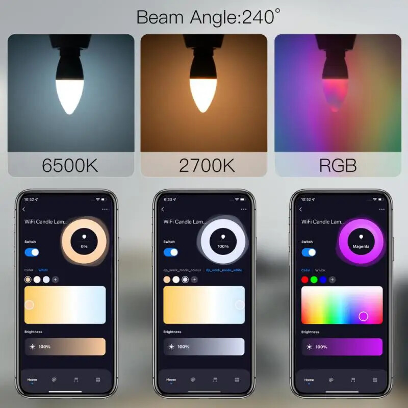 Smart Light Bulb: WiFi TYPE 9: Warm White Candelabra: E14 RGB: LED CORUI: Works With Alexa Google Home Support 1: Wholesale/Dropshipping Brand: N/A TYPE 3: Smart Light Bulb TYPE 14: Wireless TYPE 2: WiFi TYPE 5: Lampada TYPE 1: Tuya Support 2: Drop Ship TYPE 8: RGB and CW and WW TYPE 12: Timer Function 100-240V: Voice Control TYPE 16: App Remote Control TYPE 13: Timing Function TYPE 6: LED RGB Lamp TYPE 19: Alexa Alice Google Home TYPE 15: Smart Life TYPE 18: Alexa Google Assistant TUYA: Adjustable brightness Dimmable: Lightbulbs TYPE 7: RGB and White TYPE 17: Alexa Google Home TYPE 4: Color Bulb TYPE 11: Dimmable TYPE 10: Lighting TYPE 20: Yandex