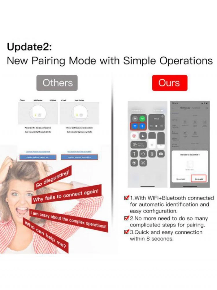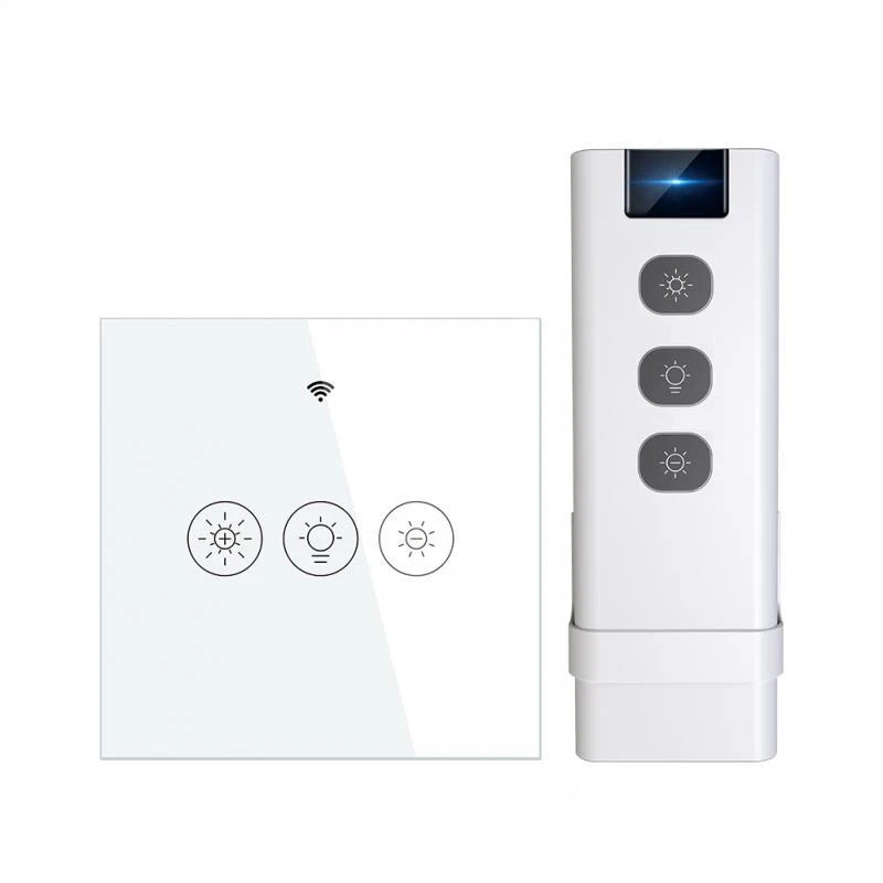AUBESS Tuya Wifi Smart Wall Touch Sensor Switch LED Light Dimmer Switch Smart Life APP Remote Control Support Alexa Google Home Description: 100% Brand New and High Quality! The remote control does not contain batteries, you need to buy LR23A 12V batteries by yourself 2020 New Arrival Upgraded with More Personalized Points: Update1:Multi-control in a much easier way Update2:New pairing mode with WiFi Bluetooth Update3:Backlight ON/OFF optional Update4:Relay status adjustable when power off Update5:RF frequency built-in for RF remote control Main Features: 1.2/3-way multi-control association to control 1 light with multiple dimmer switches; anti-scratch tempered glass panel suits any home decor and allows for effortless touch control; you can multi-control associate this switch to multiple different switches in Smart Life App. 2.Non-interference control mode; allows the switch to be controlled via Smart Life, touch control, voice, and remote with RF433 frequency and 1527 encoding remote switch(not included); each control method works independently; achieve multi-control by associating to other smart switches 3.Compatible with Alexa and Google Home for hands-free voice control with 0%-100% dimmable; can also be controlled via Smart Life/Tuya app anytime, anywhere; setting relay status and remembers last relay status optional when powered off , backlight switch On/Off. 4.Take full control of connected appliances with timers, schedules and countdown (1/5/30 mins, 1 hour, etc.) with the app; share control with family and friends for added convenience 5.Neutral wire is required in your switch boxes to operate correctly; only supports 2.4 GHz network; offers easier pairing via WiFi and Bluetooth connectivity. Specifications: Model : WS-EU-D: WS-US-D Working voltage: 100-250V AC, 50Hz/60Hz Max. total current:1A(EU)/2A(US) Max. Load Power: EU:220W(220V) US:440W(220V)/220W(110V) Wireless type: WIFI2.4G RF433MHz Working temperature:-10℃-45℃ Support system: Android/ios Package Included: 1*smart switch 1*Instruction Notes: The remote control does not contain batteries, you need to buy LR23A 12V batteries by yourself!