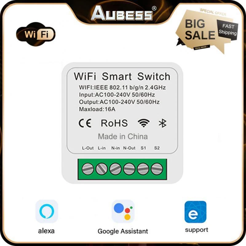 AUBESS WiFi Dimmer Switch Module smart Home Light Controller Compatible With 2.4G Remote Control work with ewelink APP Description: Rated Voltage: 85-260 (V) Rated Current: 10 (A) Shell Material: PC V0 Flame Retardant Heat Resistance Temperature: -10-85 (℃) Specifications: 1. Control Your Lights Easily! 2. Upgrade Your Lighting System! 3. Create A Comfortable Atmosphere! 4. Easy Remote Control! 5. Experience The Future Of Lighting! Package Included: 1*mini Smart Switch Module 1*manual 1*remote Control