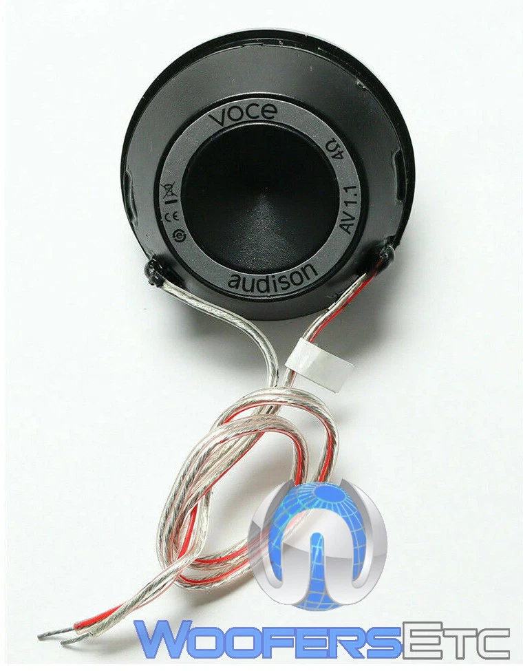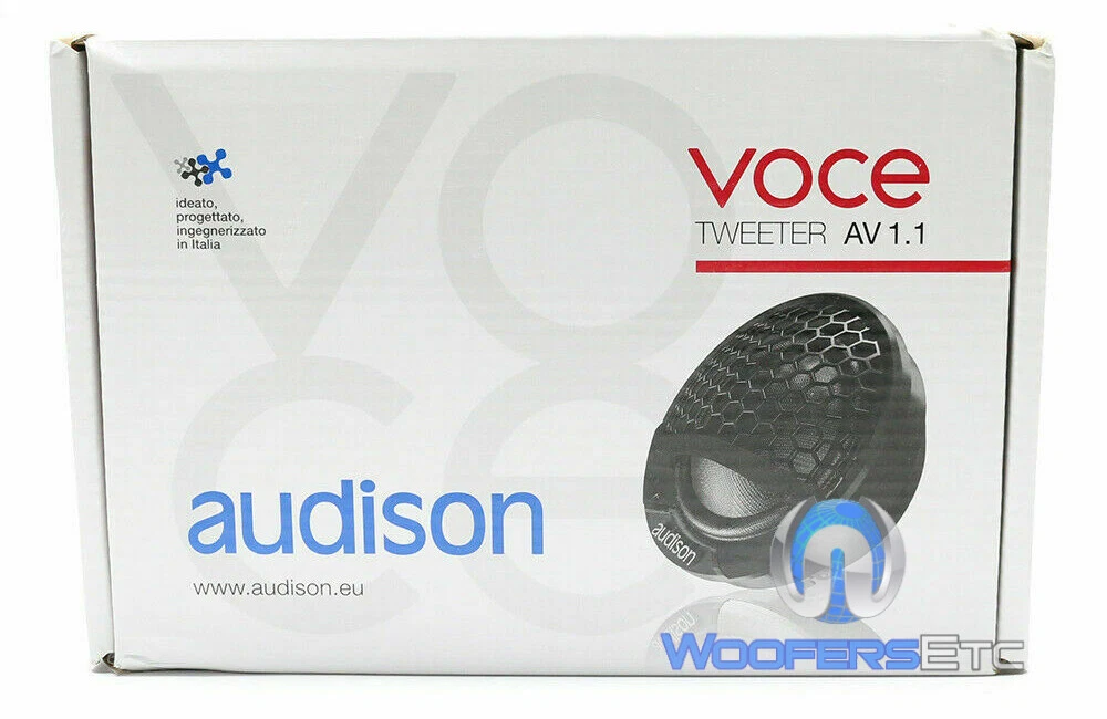 Brand New! AV1.1 - Audison Voce 1.1" 180W Tetolon Tweeters Features & Specifications: 1.1" Component Tweeters Power Handling: Peak: 180 watts RMS: 90 watts Impedance: 4 Ohm Frequency Response: 1,000 Hz - 22,000 Hz Sensitivity: 92 dB Tetolon Fibre Dome CCAW Double Layer Voice Coil High Density Neodymium Magnet Mounting Depth: 5/8" Shipping Policy: Domestic: Please note that Free Shipping is within the continental US only. Free ground shipping does not apply to Alaska, Hawaii, APO/FPO military addresses and any US territories, including Puerto Rico, Guam, US Virgin Islands, Northern Mariana Islands and American Samoa. Please contact us to inquire about the shipping cost to these locations. International: Import duties, taxes and charges are not included in the item price or shipping charges. These charges are the buyer's responsibility. Please check with your country's customs office to determine what these additional costs will be prior to bidding/buying. These charges are normally collected by the delivering freight (shipping) company or when you pick the item up – do not confuse them for additional shipping charges. Warranty : Each and every product for sale on ebay.com by woofersetc is covered under a (1) One Year Warranty, and can be returned for a period of (1) one year for warranty service. If you have purchased a product from us within the last one (1) year, and it is failing to perform as intended by its manufacturer, please email customer service. You will be issued a Return Authorization Number. Returns will not be accepted without a previously issued RA#. In order to maintain an inventory of 100%, Brand New, A-Stock, untouched products, all sales are final. We ask that you please be sure you are ordering the correct product. Protect Your Product With a Consumer Priority Service Warranty