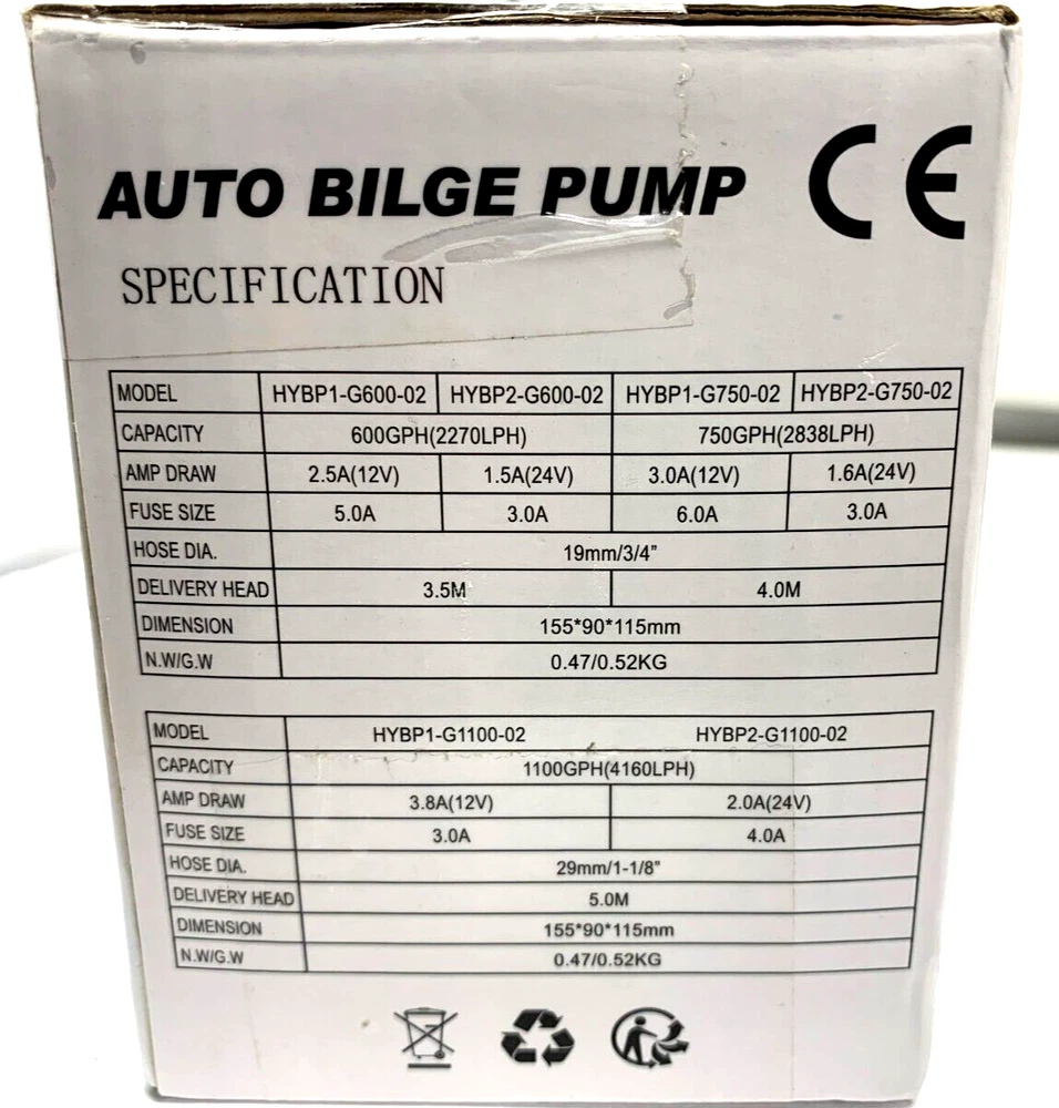 Introducing the AURELIO Fully Automated Bilge Pump, perfect for your plumbing and ventilation needs. This high-quality pump is designed to keep your boat clean and free from any mess. Made by the trusted brand AURELIO, this pump is a must-have for any boat owner. Manufactured in China, this pump is built to last and can handle up to 750 gallons per minute. With its fully automated design, you can rest assured that your bilge is being pumped out efficiently and effectively. This pump is compatible with a wide range of boats and is easy to install. Don't miss out on this essential piece of equipment for your boat. NEW OPENED BOX.SHIPS SAME OR NEXT BUSINESS DAY.