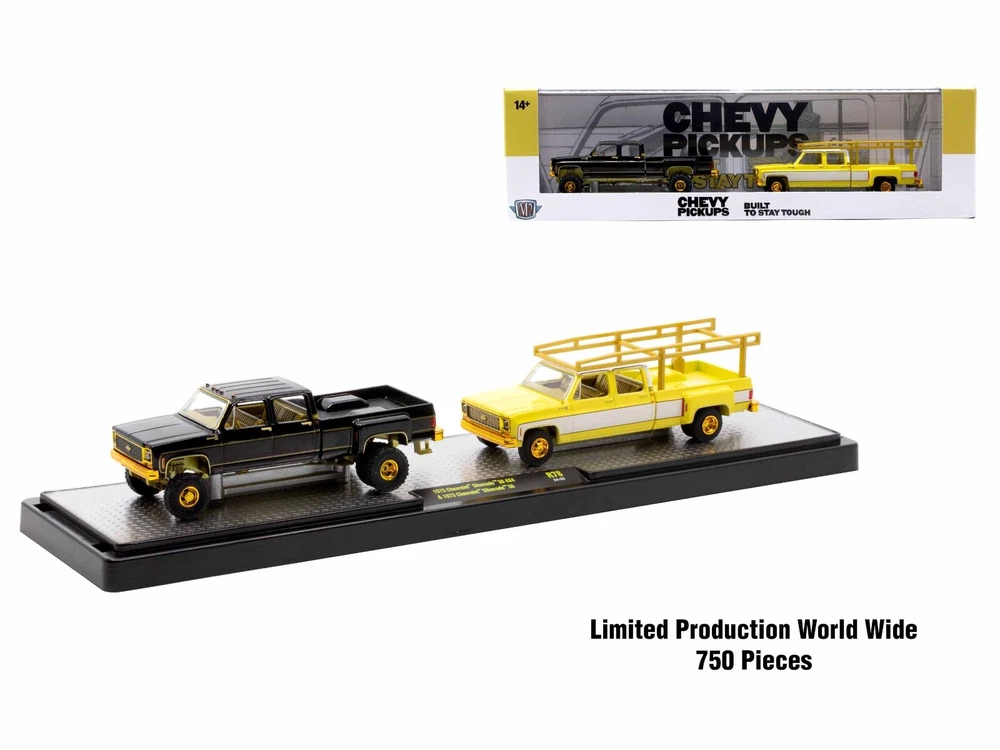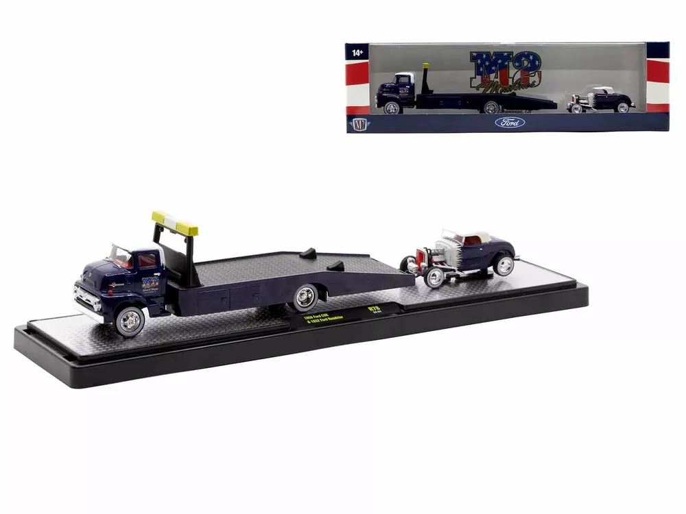 SAVE WHEN BUYING MORE!!! Buy as many items as you wish and we will ship them for one low shipping cost to 48 continental U.S. states physical addresses. Example: Shipping cost for most 1/24 scale items is $10, for 1/18 scale items is $12. If you use Add to cart button and purchase 5 items in 1/24 scale and 5 items in 1/18 scale, your shipping cost will be only $12 for 10 items. In order to request combined shipping for signed in desktop users: Please use Add to cart button for desired items, click Go to cart button and press Request total from us before paying and we will send combined shipping invoice shortly. If checking out as a Guest or using a mobile version, please use Add to cart button then click Go to cart button , press Go to checkout button, request extra shipping refund in Message to seller section and finalize payment by pressing Confirm and pay button. We will refund extra shipping cost shortly. DESCRIPTION: Brand new 1/64 scale diecast models of Auto Haulers Set of 3 Trucks Release 78 Limited Edition to 8000 pieces Worldwide die cast models by M2 Machines. Brand new boxes. Real rubber tires. True-to-scale detail. Officially licensed product. Detailed interiors, exteriors. Die-cast metal body and chassis. Dimensions approximately L-9.5 inches long. Manufacturer's original unopened packaging. Each model packed in an individual plastic display showcase. PLEASE NOTE: Might come with a chase truck instead of one of the truck in a set, but it is not guaranteed. CHASE MODELS: 1975 Chevrolet Silverado 30 4X4 Pickup Truck. The body is black, the bumpers, grille, trim and wheels are gold chrome, the interior is gold. 1973 Chevrolet Silverado 30 Pickup Truck. The body is yellow and white, the bumpers, grille, trim and wheels are gold chrome, the interior is gold. Limited Edition to 750 pieces Worldwide. THIS SET INCLUDES FOLLOWING MODELS: 1) 1974 Dodge Ramp Truck Yellow and 1971 Dodge Challenger Funny Car Yellow "MoonEyes". 2) 1975 Chevrolet Silverado 30 4X4 Pickup Truck Black and 1973 Chevrolet Silverado 30 Pickup Truck Yellow and White. 3) 1956 Ford COE Flatbed Truck Blue with White Top and Red Interior and 1932 Ford Roadster Blue and White with Red Interior. PAYMENT INSTRUCTIONS: We gladly accept PayPal. Tracking info is free upon request. SHIPPING INFO: We do combine shipping cost for two or more items purchased. Please check shipping and payment section. In order to receive combined invoice for multiple purchases, please purchase items and let us know when you are done shopping, so we can send you one combined invoice. We can only combine shipping cost if items paid in one transaction. Dear Valued Customer! We appreciate your business. BUY WITH CONFIDENCE Fast Order Fulfillment 99% of orders are shipped within 24 hours or sooner. Simple Return Policy Thirty days simple returns. More than 10 Years of Experience Family owned and operated, we’ve had the experience of selling online for more than 10 years. Satisfaction Guaranteed! Our feedback says it all. And now, we hope to have the chance to prove we are the best to you! Competitive Pricing and Unrivaled Selection We are the number one direct distributor of diecast model cars in the USA, so we are able to provide very competitive pricing. Our stock selection is unrivaled with over 4,500 different items. Quality Shipping & Handling We package all our orders with care using bubble wrap to protect models from damage in transit. Each model that has a fragile window box is covered with carton protection. Excellent Customer Service Our customer service is second to none with thousands of returning, satisfied customers from all over the world.