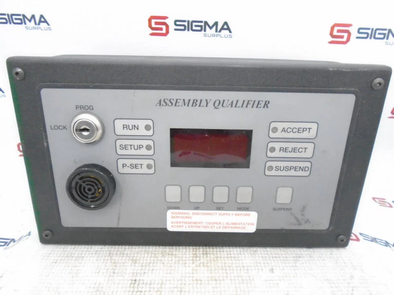 • • ASSEMBLY QUALIFIER CONTROLLER Send us a message Our Store Seller Profile Feedback Save this seller Contact AUTOMATED SYSTEMS & CONTROLS AQGFR-0E4 CONTROL PANEL • ASSEMBLY QUALIFIER CONTROLLER Disclaimer SIGMA Surplus and SIGMA Group are not affiliated with nor an authorized distributor or representative of any manufacturer, brand or product listed. All items sold by SIGMA Surplus are covered under SIGMA Surplus' warranty and not the manufacturer warranty. Designated trademarks, brand names and brands appearing herein are the property of their respective owners. Shipping & Payment We guarantee same day shipping on items purchased before 2:00 PM CST Monday-Friday. (Excludes Freight) Rush and international shipping are available for an additional charge. Freight can be arranged by either our staff or the purchasing party. International shipping options exclude Brazil and the EU. Returns Items are sold as-is after a thorough inspection and cleaning process. Please do not hesitate to reach out if you have additional questions regarding an item before purchasing. We offer a standard 30-day return policy, with the buyer responsible for shipping. Other SIGMA Surplus is a division of SIGMA Group. We specialize in purchasing and selling quality pre-owned mechanical parts, PLCs, motors, panel views, electrical components and other industrial surplus inventory. We stock a wide variety of items ranging from small parts to complete machines. Whether you are interested in selling or buying, we make it our mission to help customers have a quick, hassle-free experience. Product images shown on the items are representative photos. Actual product photos are available, upon request, if needed prior to shipment We appreciate your business!