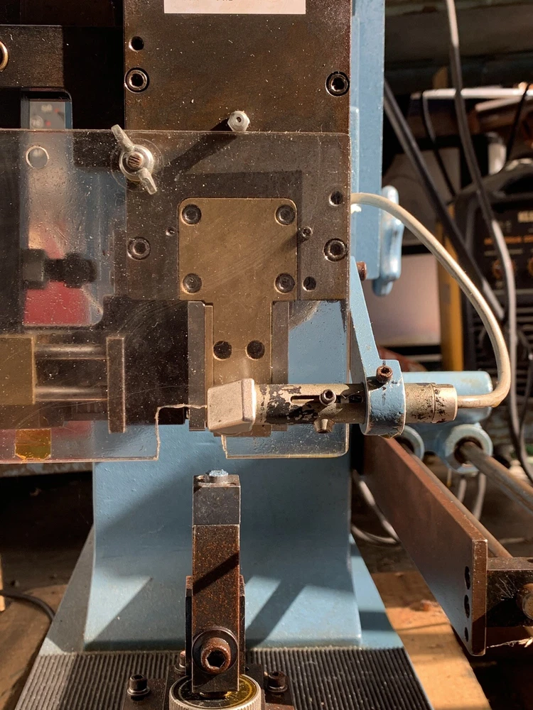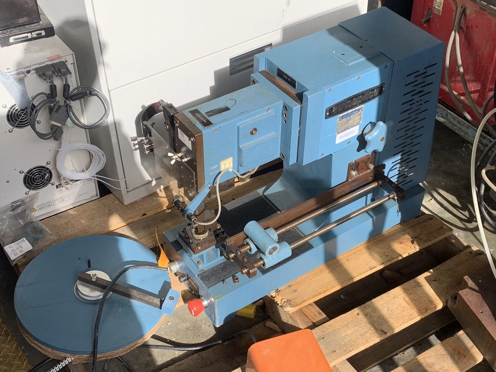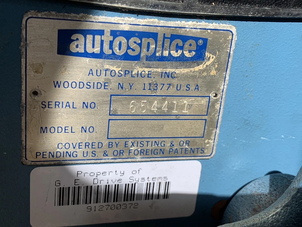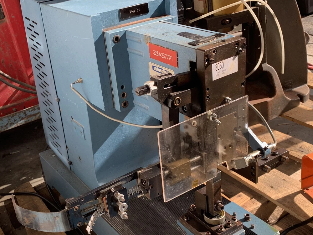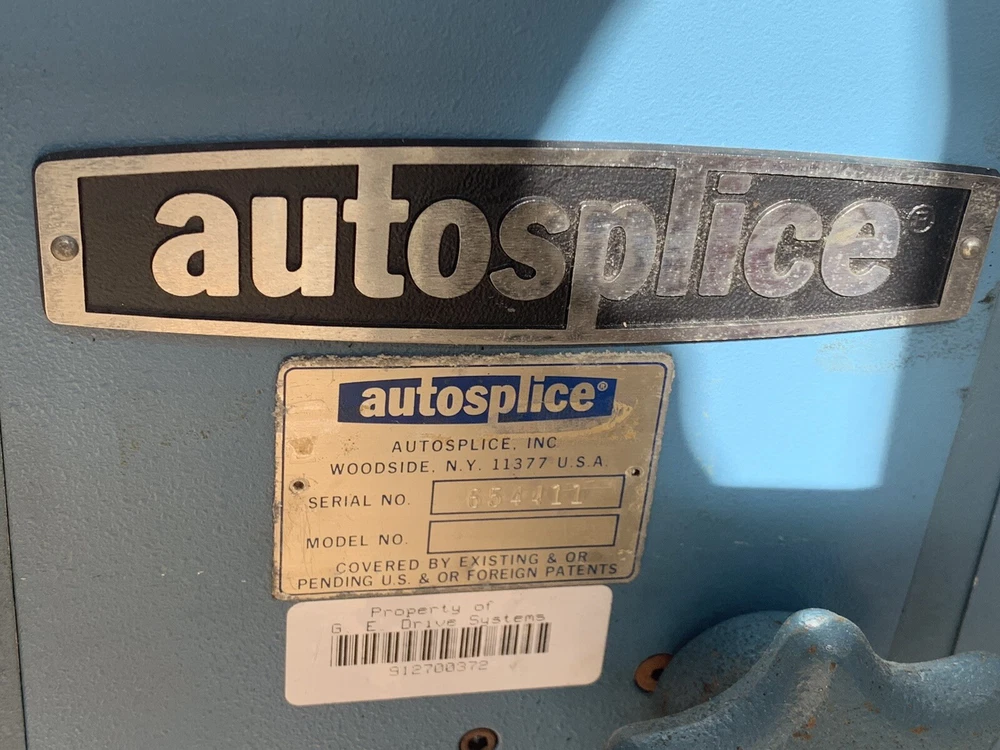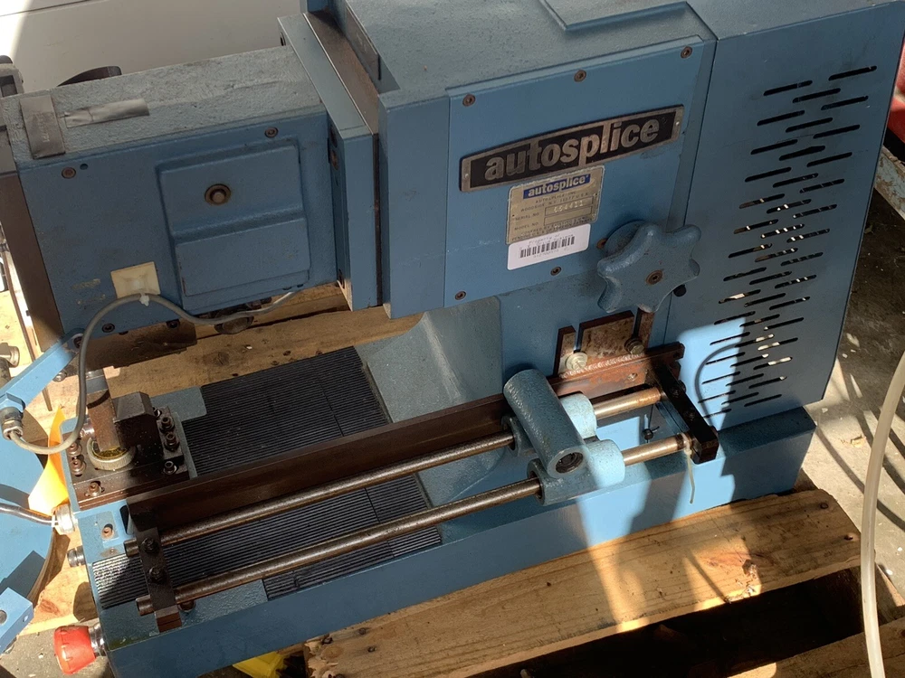 Autosplice reel feed automatic termination machine. Working when removed from service for offshoring. Reel pictured mounts to left side of machine. Pedal switch operated. Free Freight quotes.