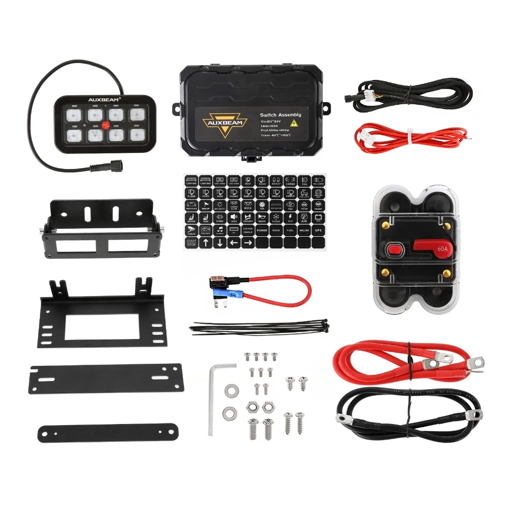 Maximum Current: 60A Features: Dustproof, LED Light, Waterproof, Weatherproof Input Voltage: DC 12V-24V 2.apply to: Sport Utility、4WD 4X4、Mining、Marines、Car、excavator gtin13: Does not apply Brand: AUXBEAM Maximum Power: 600W at 12V / 1200W at 24V Operating temperature: - 40° C ~, 150° C Manufacturer Part Number: Does Not Apply Color: Multicolor Placement on Vehicle: Center Console, Dashboard, Door, Front, Left, Rear, Right, Steering Column Switch operation: On-Off Waterproof Rate: IP65 Panel Button Light Color: RGB Type: Switch Panel Manufacturer Warranty: 5 Years 1.apply to: Pickup、Wagon、UTB、Cab、ATV、SUV、Truck、Boat、Bus 3.apply to: Tractor、UTE、Van Camper、road roller、bulldozer、crane UPC: Does not apply