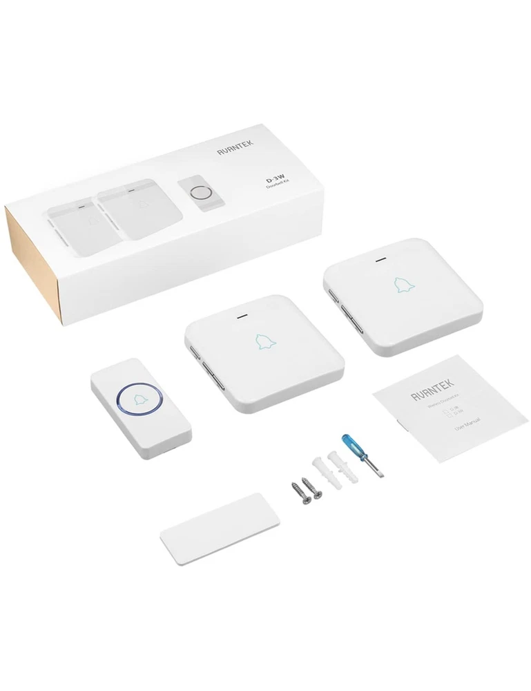AVANTEK Wireless Doorbell, D-3W Waterproof Door Chime Kit Operating at over 1300 Feet with 2 Plug-In Receivers, 52 Melodies, CD Quality Sound and LED Flash Product Details Color: White Brand: AVANTEK MPN: D-3W EAN: 4897051617662 UPC: Does not apply Manufacturer: AVANTEK Part Number: D-3W Item Weight: 1.1 pounds Product Dimensions: 7.72 x 2.32 x 4.21 inches Item model number: D-3W Batteries: 1 CR2 batteries required. Is Discontinued By Manufacturer: No Color: White Voltage: 3 Volts Item Package Quantity: 1 Sound Level: 115 dB Measurement System: Imperial, Metric Included Components: 1 × Adhesive tape, 1 × Screwdriver, 2 × Screw, 2 × Anchor, 1 × Transmitter (battery included), 1 × User manual, 2 × Plug-in receiver Batteries Included?: No Batteries Required?: No Battery Cell Type: Lithium Ion Average Battery Life: 3 years Date First Available: November 8, 2016 HIGH PERFORMANCE TRANSMITTER: Ultra-low power consumption; uses a lithium battery that boasts 3 year maximum lifespan; IP55 dustproof and waterproof; working temperature ranges from -4 F-140 F; withstands various harsh weather conditions 1300 FT / 400 M WIRELESS RANGE: 2 plug-in receivers included; will not interfere with other equipment in your home or those of your neighbors; ensures that you will never miss any visitors, even if you are several rooms away 52 BEAUTIFUL CHIMES: 40 mm stereo speaker delivers rich and crisp sound; press the Next or Previous button to easily choose from 52 melodies; 5 adjustable volume levels, with a maximum volume of 115 dB; enjoy pleasant melodies whenever someone rings at your door MEMORY FUNCTION: Preserves your last set melody and volume level after a power outage; no need to reset to your previous settings; convenient and easy to use design for a better user experience EASY TO SET UP: Additional AVANTEK RB-1/CR-1 plug-in receivers can be added to enhance coverage; the package includes 2 screws, 2 anchor plugs, 1 key, and 1 adhesive patch for easy installation of the transmitter