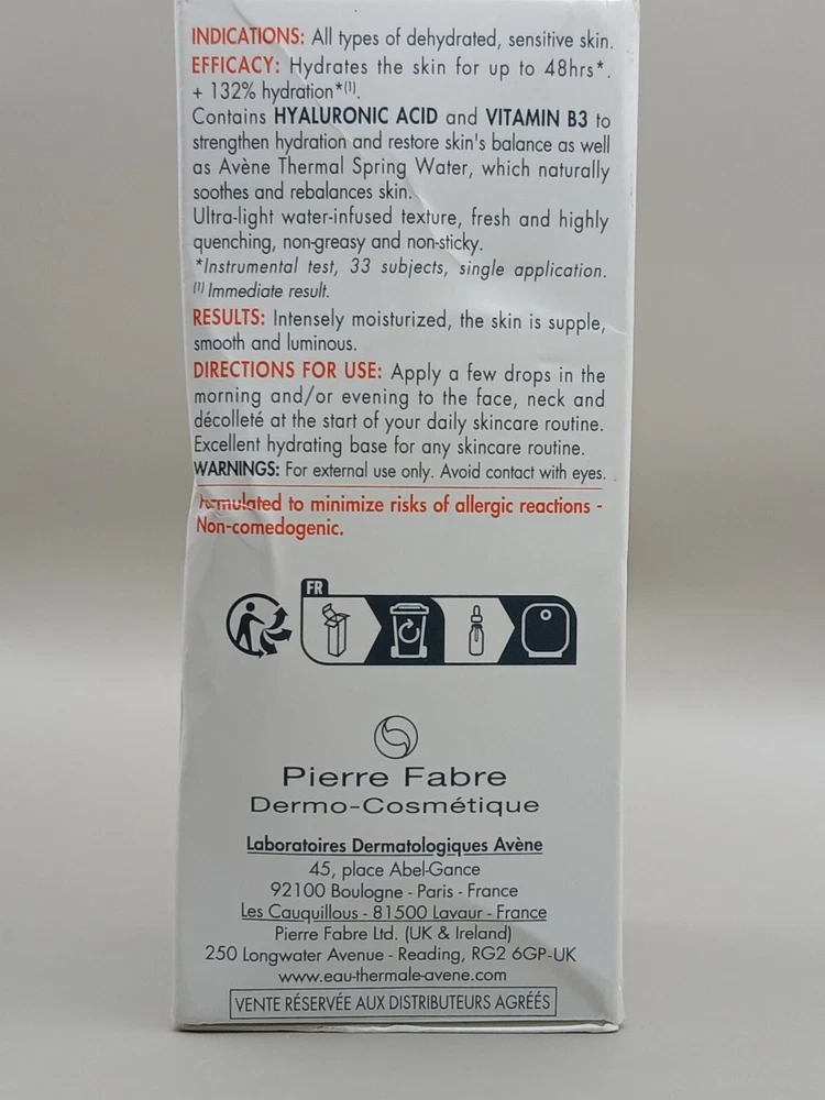Product Description:- 💧 Avene Hydrance Boost Concentrated Hydrating Serum – 1oz – Ultimate Hydration & Skin Rejuvenation 💧 Quench Your Skin’s Thirst with Avene Hydrance Boost Serum! Revitalize your skin with the Avene Hydrance Boost Concentrated Hydrating Serum . This powerful serum delivers immediate and long-lasting hydration, restoring your skin’s moisture balance. Infused with Avene’s signature Thermal Spring Water , this serum soothes and nourishes, leaving your skin feeling plump, refreshed, and radiant. Ideal for dry, dehydrated, or sensitive skin, it helps to restore your skin's natural moisture barrier for a healthy, glowing complexion. ✨ Why You’ll Love Avene Hydrance Boost Concentrated Hydrating Serum: 🌿 Deep, Long-Lasting Hydration Packed with hydrating ingredients , this serum helps to lock in moisture for lasting hydration. It provides immediate relief to dry skin, ensuring your skin feels soft, smooth, and deeply nourished throughout the day. 💧 Lightweight & Fast-Absorbing The lightweight formula quickly absorbs into your skin, leaving it soft and silky without any greasy residue. Perfect for layering under moisturizers, sunscreens, or makeup. 🌱 Soothes & Calms Avene’s Thermal Spring Water helps to soothe and calm irritated skin, reducing redness and inflammation. This serum is ideal for those with sensitive skin looking for a comforting, refreshing boost. 🧴 1oz Boxed for Freshness & Convenience Packaged in a 1oz bottle with a protective box, the serum is fresh , long-lasting , and easy to carry with you on-the-go. 📅 Expiration Date: 05/27 Enjoy a fresh and potent product with an expiration date of May 2027 , ensuring maximum effectiveness and safety. 🚀 Why Choose Avene Hydrance Boost Concentrated Hydrating Serum? 🌿 Intense Hydration – Restores moisture balance and provides long-lasting hydration. 💧 Lightweight & Fast-Absorbing – Comfortable texture that’s perfect for layering. 🌱 Soothes & Calms – Ideal for sensitive skin with its soothing Thermal Spring Water. 🧴 1oz Boxed Size – Convenient and travel-friendly packaging for everyday use. 💥 Fast Shipping – Order Now Before It’s Gone! Order Avene Hydrance Boost Concentrated Hydrating Serum today and enjoy the powerful hydration your skin deserves! With fast and reliable shipping, you’ll have this soothing serum in no time. 🔥 Give Your Skin the Hydration Boost It Needs! Treat your skin to the benefits of Avene Hydrance Boost Serum and start feeling the difference today. Deep hydration, soothing relief, and a refreshed, glowing complexion await! Thanks For buying .