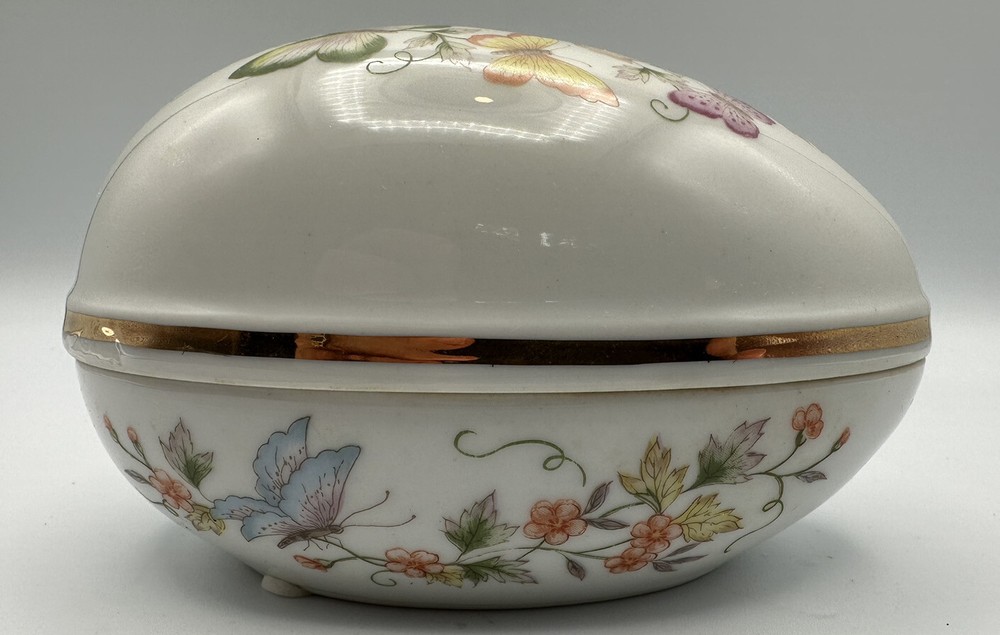 This delicate porcelain egg is a true vintage treasure! The intricate butterfly design and 22K gold trim give it an elegant, luxurious feel. It arrived quickly and was beautifully packaged—perfect for collectors or as a charming decorative piece. The craftsmanship is stunning, especially for being nearly 50 years old. Highly recommended!