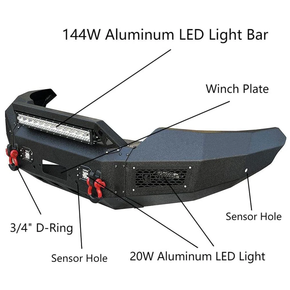 60 Days FREE RETURN | Awesome customer's service GUARANTEED | Free & Fast shipping Manufacturer Direct Sell | 100% Positive Feedback | Fast&Secure Delivery Product description: Package : 1X Front Bumper 1X144W LED Light Bar 2X Square LED Light 2X Strip LED Light 2X4.75T D-Rings A set of screws Installation instructions 1X Free Wiring harness kit 2 lead Volume and Weight: Front Bumper Volume:78.3X24.8X18.9(inches) Weight: 134.5lbs. Front Bumper Descriptions: Aaiwa For 2015-2017 Ford F-150 New Front Bumper W/Winch Plate&LED Lights&D-Ring 60 Days FREE RETURN | Awesome customer's service GUARANTEED | Free & Fast shipping Manufacturer Direct Sell | 100% Positive Feedback | Fast&Secure Delivery Product description: Package : 1X Front Bumper 1X144W LED Light Bar 2X Square LED Light 2X Strip LED Light 2X4.75T D-Rings A set of screws Installation instructions 1X Free Wiring harness kit 2 lead Volume and Weight: Front Bumper Volume:78.3X24.8X18.9(inches) Weight: 134.5lbs. Front Bumper Descriptions: [Fits Following Vehicles] - for 2015-2017 Ford F-150 (except Raptor) . [Heavy-Duty Protection] - Front Bumper is manufactured from heavy duty 5/32" steel sheet and 2"X0. 120" steel tubing to add protection to your precious vehicle while providing it with superior towing capabilities with its heavy-duty D-rings. It also gives your vehicle an attractive upgrade in its appearance for added style. [Surface Protection.] - Premium Two stage finish using epoxy pre-coating and high-grade textured black powder coating and along with our advanced laser welding technology for long lasting surface protection.. [Extremely Bright Light] - Built-in 1x 144W long light bar,2x 18W strip lights,2x 20W square lights.They brighten up the road, perfect for any night time adventure. [Bolt-on Installation] - The bumper is engineered to be a direct bolt-on installation for your, No Drilling or Modification Require,Package Comes with instruction for installation. Item Specifics Type Bumper Protector Brand Aaiwa Manufacturer Part Number Does Not Apply Fitment For 2015-2017 Ford F150 F-150 Color Black Material Stainless Steel UPC 749838979811 Construction Heavy Duty High Tensile Steel Manufacturer Warranty 3 Years Bumper Cut-out Towing Hitch Cut-out OE Spec or Performance/Custom Performance/Custom Fitment Type Direct Replacement Finish Powder Coated Style Perfect for Off-Roading Protection Features Mounting Hardware Included, Led Lights & D-rings Included Placement on Vehicle Front Interchange Part Number Pickup Truck Winch Bumper Bull Guards Fog Light Bar Textured Front Bumper Volume 78.3X24.8X18.9(inches) Weight 134.5lbs. Payment 1.We accept PayPal, Google Pay, VISA, Master Card, Amex. Credit card payment can also be made via PayPal 2.All products will be sent to your eBay address. Please make sure your eBay address is correct before you pay. 3.If you would like to change your address, please contact us ASAP by eBay message before shipment. Shipping 1.Package can be shipped out to you within 24-48 hours from USA 2.The default expected delivered time is 2-8 working days 3.We send the most packages via USPS/ UPS/Fedex Or DHL 4.Delivery is not available on weekends, public holidays or after business hours. 5.If you have any questions or issue about delivery, please contact us via eBay Messages and we will do our best to make sure you’re happy. Returns 1.We will provide 3 years warranty. And you may return all products within 60 days of delivery for replacement or refund if you're unsatisfied with them. 2.If you would like to return your product, please contact us within 60 days of the sale date so we can offer the pre-label. This must be done through eBay messages. Please do not return a product without first contacting us. 3.Buyers are responsible for appropriate packing, returning shipping cost, insurance and returning the item in “new” condition. Used items will not be accepted for return. 4. If you received wrong of defective products, please take photos and contact us to confirm. 5.For the returned products, we will arrange a new replacement or issue a refund after we have received your package and inspected it. Contact Us 1.We operate the shop based on the principle of " quality first, credit first, customer first, integrity". Please contact us to solve the problems firstly if you have any ones. 2.Our Company specialize in producing and selling LED Work Light/ LED Light Bar/ LED Headlight/ Auto Parts & Accessories 3.Due to the time difference, we may not be able to respond to your message in time, we will check the message and solve your problem at the first time.Our Customer Support Working Time:(GMT+8)Monday to Friday--9:00-18:00. Warranty For your peace of mind, this product comes with 1-3 year warranty. We value our customers and wish to make your purchase experience as enjoyable as possible. If something goes wrong with your product, please do not hesitate to contact us for assistance. US STOCK 60 DAYS RETURN LOW PRICE 100% Brand New HIGH QUALITY Aaiwa For 2015-2017 Ford F-150 New Front Bumper W/Winch Plate&LED Lights&D-Ring 60 Days FREE RETURN | Awesome customer's service GUARANTEED | Free & Fast shipping Manufacturer Direct Sell | 100% Positive Feedback | Fast&Secure Delivery Product description: Package : 1X Front Bumper 1X144W LED Light Bar 2X Square LED Light 2X Strip LED Light 2X4.75T D-Rings A set of screws Installation instructions 1X Free Wiring harness kit 2 lead Volume and Weight: Front Bumper Volume:78.3X24.8X18.9(inches) Weight: 134.5lbs. Front Bumper Descriptions: [Fits Following Vehicles] - for 2015-2017 Ford F-150 (except Raptor) . [Heavy-Duty Protection] - Front Bumper is manufactured from heavy duty 5/32" steel sheet and 2"X0. 120" steel tubing to add protection to your precious vehicle while providing it with superior towing capabilities with its heavy-duty D-rings. It also gives your vehicle an attractive upgrade in its appearance for added style. [Surface Protection.] - Premium Two stage finish