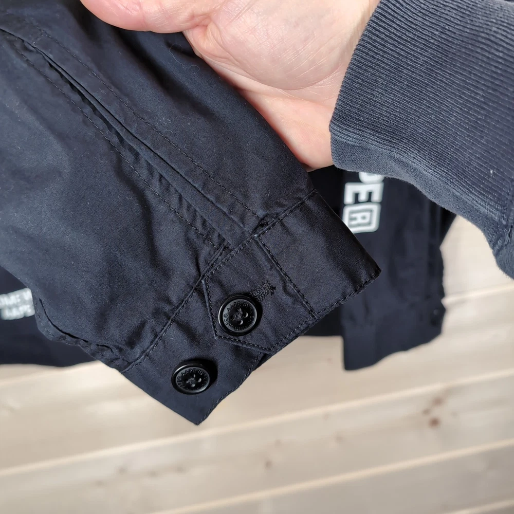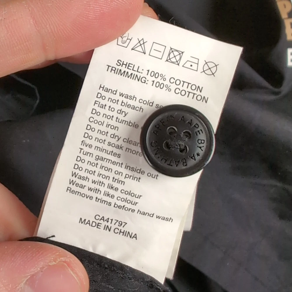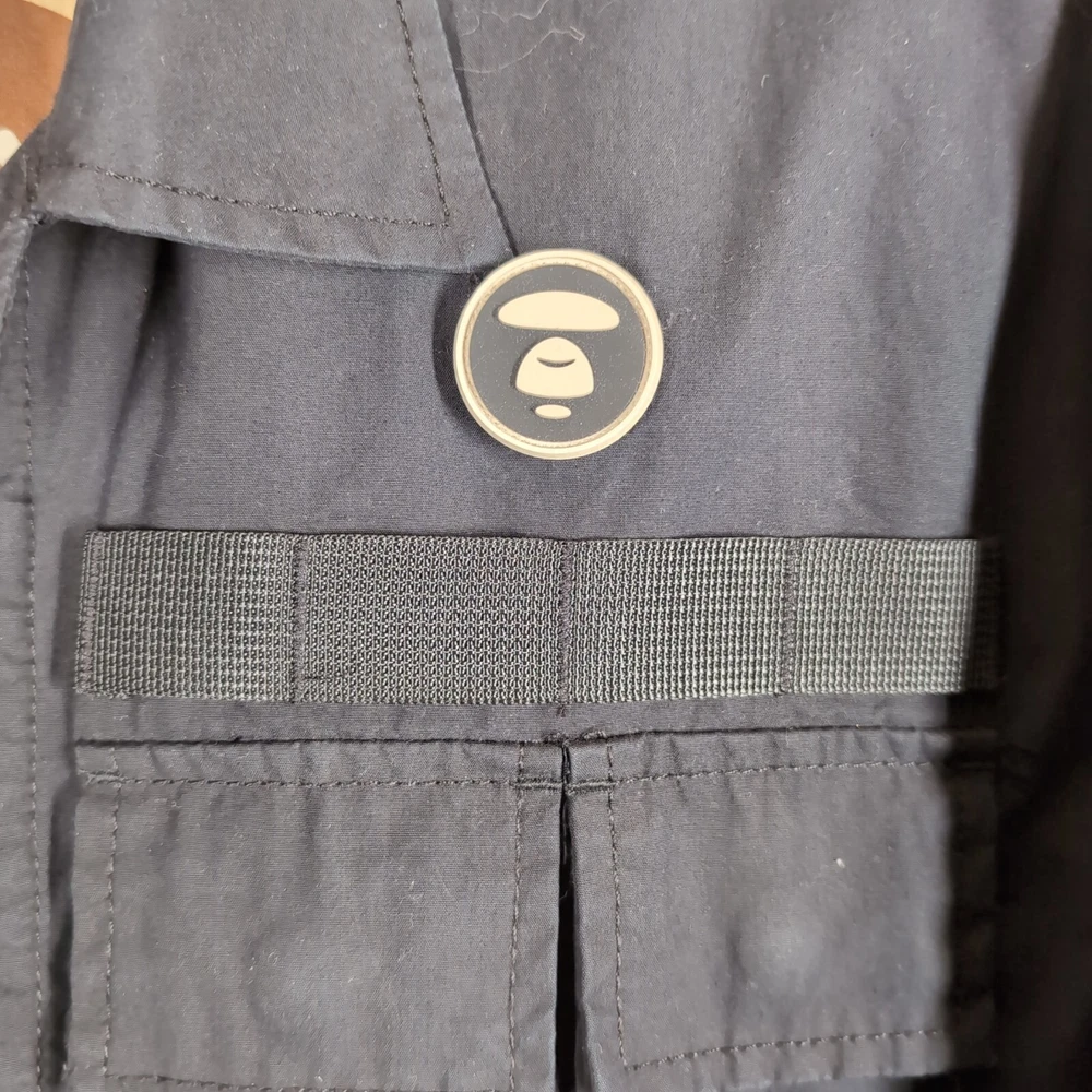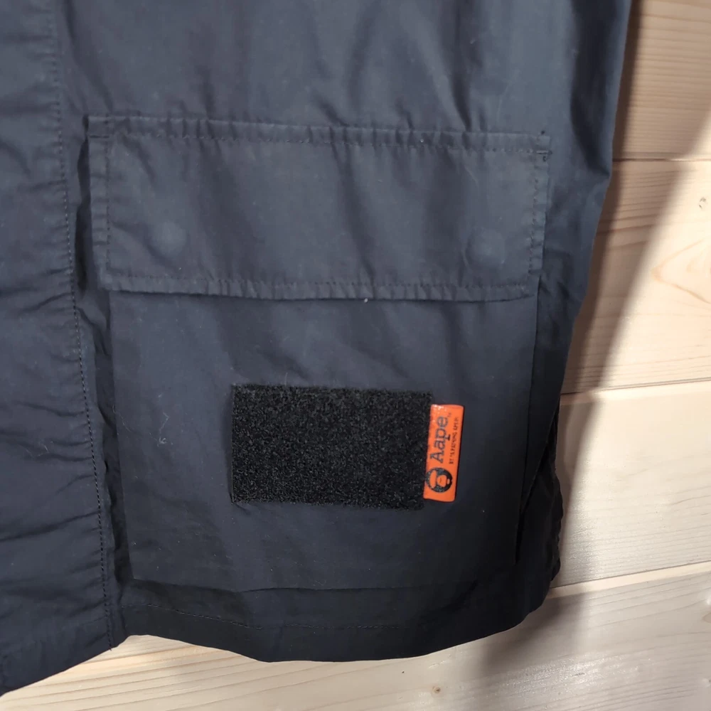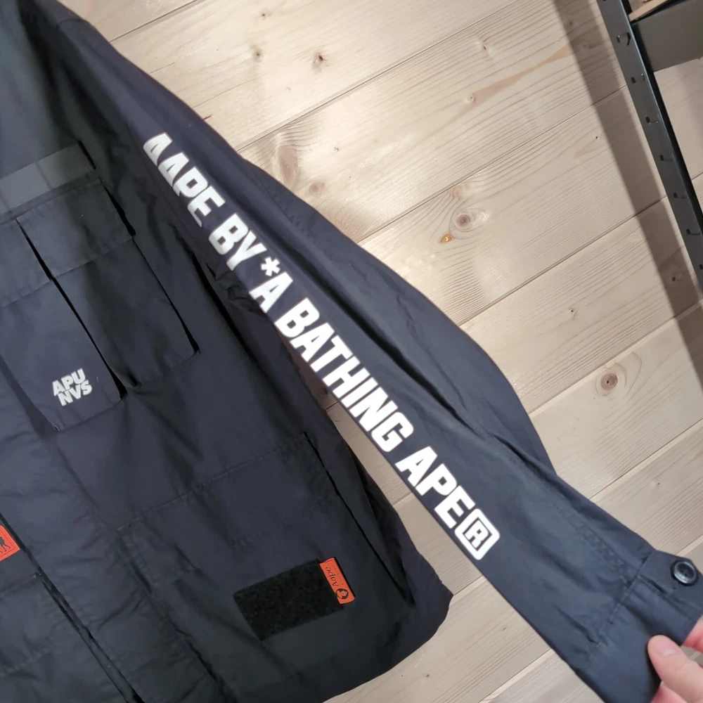 Aape By A Bathing Ape M65 Black Utility Military Shirt Jacket Overshirt Mens Size Large Pit to pit 23.5" | Length 28.5" In great preloved condition ------------------------------------------------------------------------------------------------------ For SS20, AAPE by A Bathing Ape looks to military garments for inspiration, creating cool pieces like this M65 jacket. Reworking the classic combat silhouette, it’s cut from sleek black cotton canvas and then detailed with a bevy of branding – think prints, woven tabs and insignia-style patches. 100% Cotton Button Closure 3 Chest Pockets 2 Front Pockets Printed Branding Woven Brand Patch & Tab Style Code: AAPSTM8341XXE-BKX