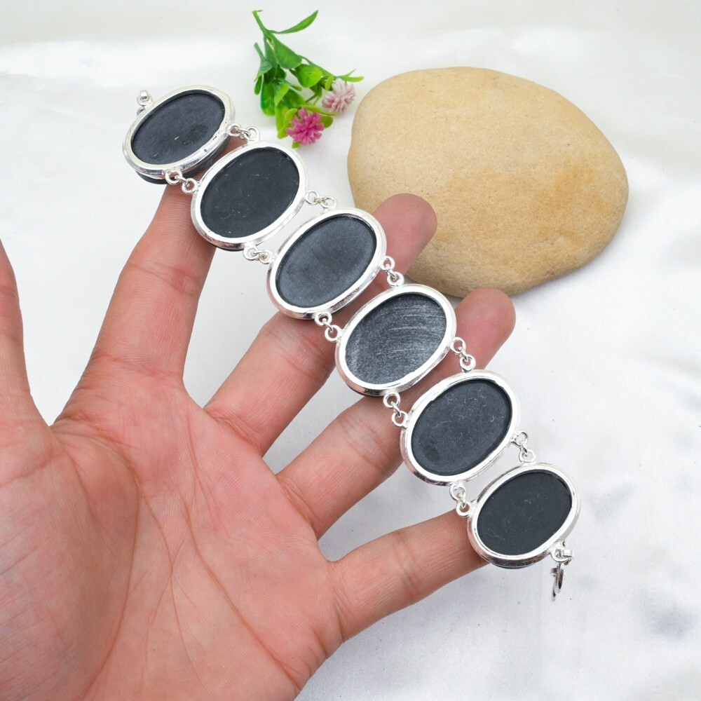Secondary Stone:Abalone ShellItem Length:8 inches with Adjustable ChainTheme:Beauty, Bohemian, Ethnic, Halloween, LoveMain Stone Creation:NaturalType:BraceletCertification:N/AFeatures:AdjustableMain Stone:Abalone ShellNumber of Diamonds:N/ACollection:HandmadeMain Stone Width:N/AMaterial:GemstoneMain Stone Length:N/AClosure:ToggleChain Type:N/AShape:Same As PictureCharm Type:Same As PictureBase Metal:Sterling SilverMetal:Sterling SilverTotal Carat Weight:10 carat and aboveMain Stone Shape:OvalColored Diamond Intensity:N/ACountry/Region of Manufacture:IndiaNumber of Gemstones:6Style:ChainCut Grade:ExcellentDiamond Clarity Grade:N/AMain Stone Treatment:Not EnhancedOccasion:Anniversary, Birthday, Christmas, Engagement, Mother's Day, Valentine's Day, WeddingMain Stone Depth:N/AMetal Purity:925Country of Origin:IndiaBrand:HandmadeDiamond Color Grade:N/AColor:SilverMain Stone Color:MultiSetting Style:Bezel