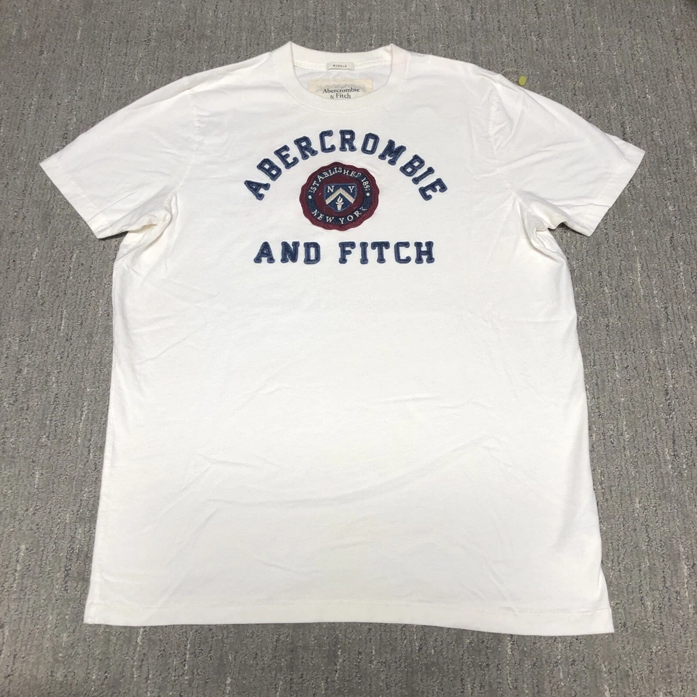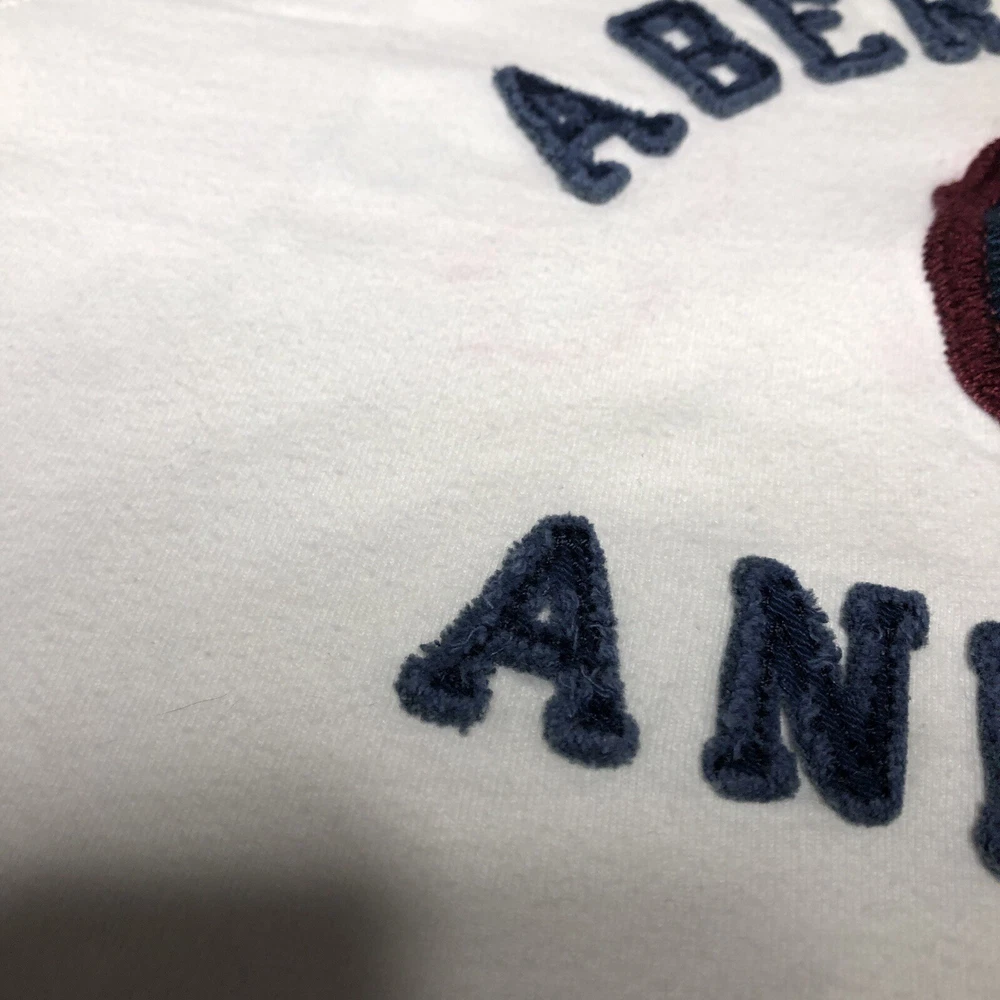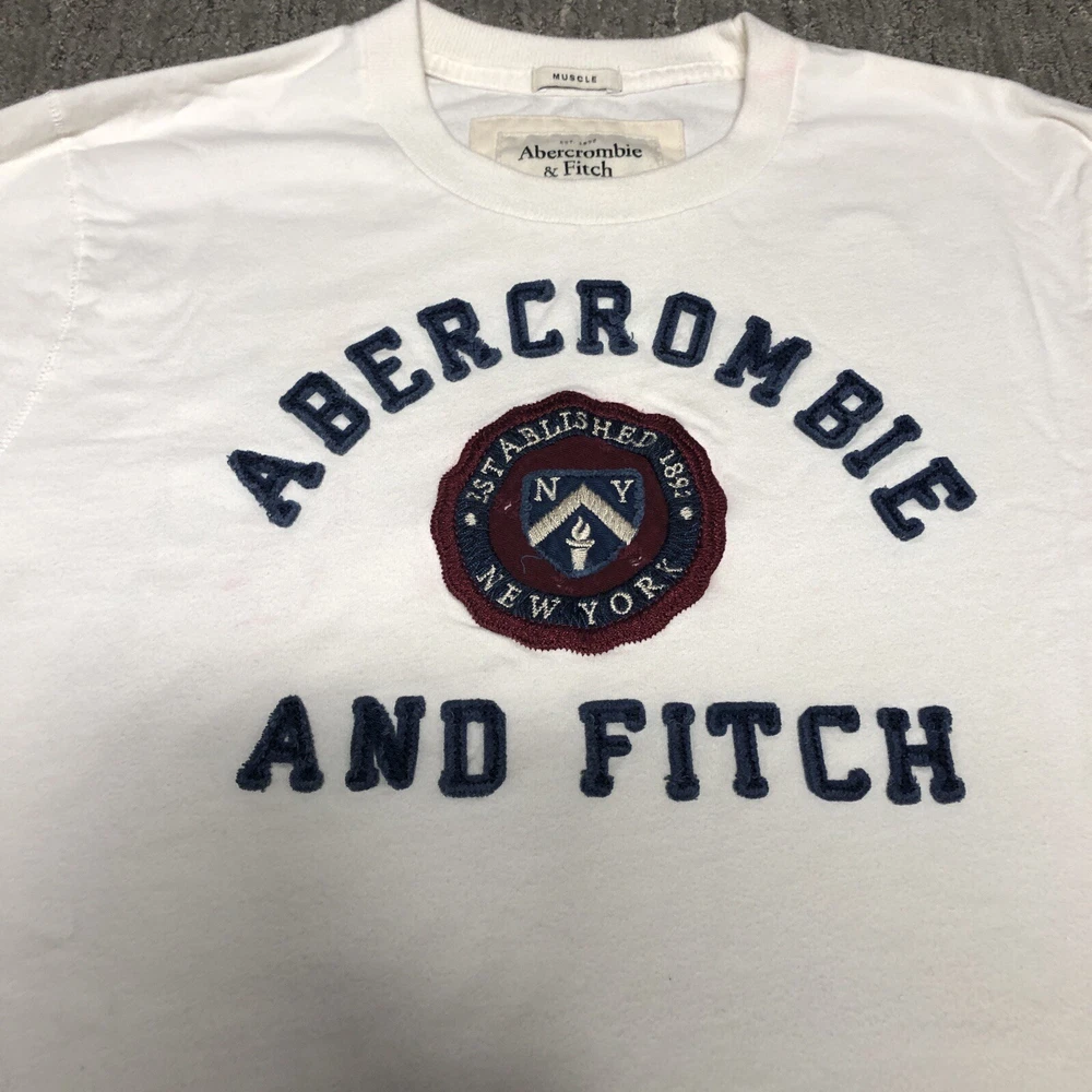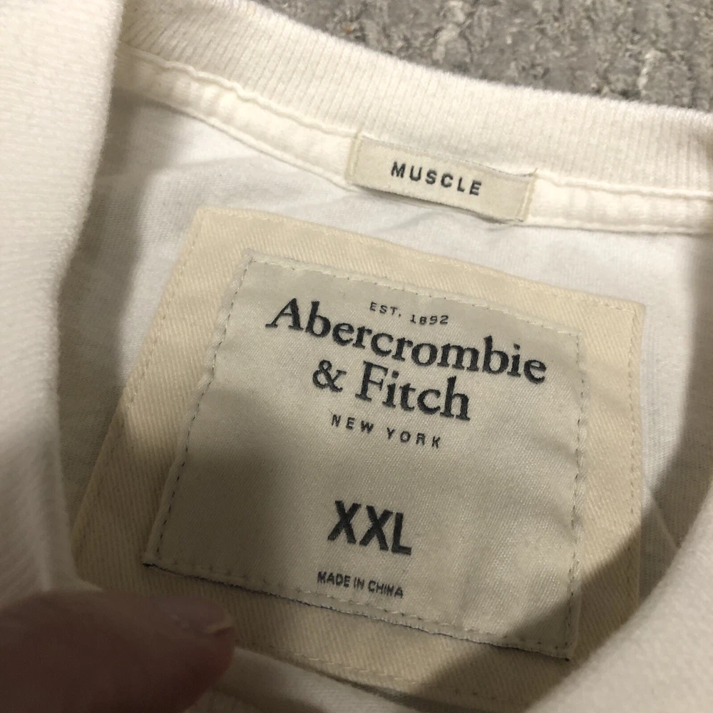 Abercrombie & Fitch Embroidered Spellout Muscle T-Shirt Men’s Size 2XL White Y2K Preowned Some pink color bleed around embroidery, collar, and on back near sleeve. No other major flaws. Please see pics and ask questions before purchasing Thanks!