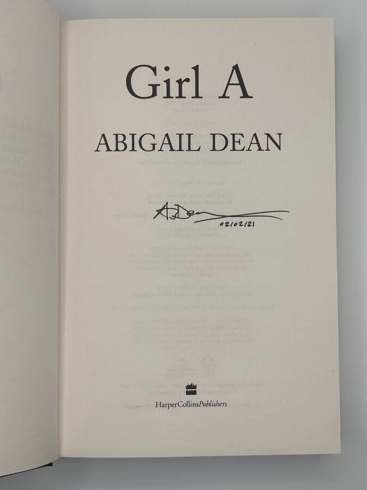 GIRL A [Signed] Author: Dean, Abigail Title: GIRL A [Signed] Publication: London, UK: Harper Collins, 2021 Edition: First UK Edition, First Printing Description: Octavo, 328 pages. In Near Fine condition with Near Fine condition dust jacket. Spine is yellow with black lettering. Dust jacket protected by mylar covering, price uncut: "£14.99" on front flap. Signed flat and dated "02/02/21" by Abigail Dean on title page. Shelved in hallway. Seller ID: 1388347 Subject: Literature Welcome to the eBay store of Second Story Books! DC's Oldest Rare and Used Bookstore, Second Story Books operates two open shops in the Washington D.C. metropolitan area. We have an extensive internet presence and provide accredited appraisals member ASA. This listing was created by Bibliopolis.