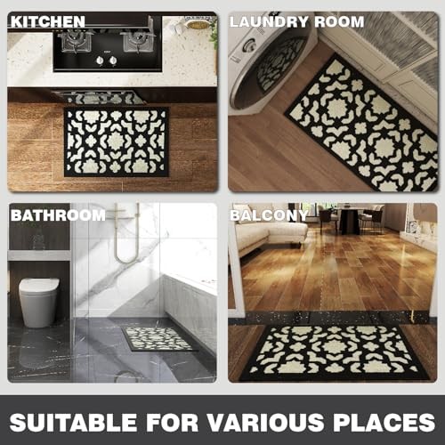 $ 14.062-Piece Farmhouse Kitchen Rug Set Non-Slip Washable Country Style Black Mats