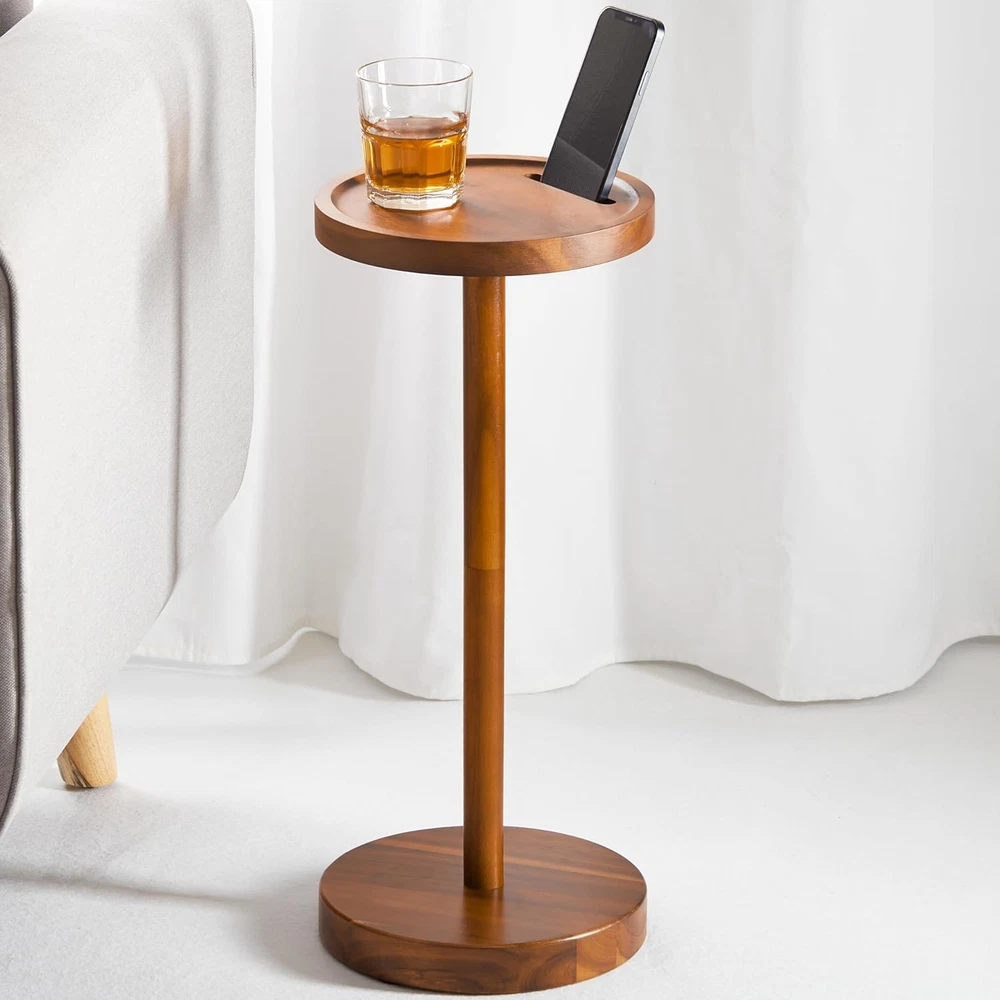 🌳NATURAL ACACIA WOOD: The BLUEWEST Pedestal Drink Table is crafted from premium Acacia wood, known for its excellent water resistance, thickness, and durability. Each table showcases a unique natural wood grain, offering a luxurious and individualistic touch to your home decor. The inherent beauty of Acacia wood not only adds a warm, organic feel to your space but also promises longevity and resilience. 📱 PHONE HOLDER: Equipped with a meticulously designed deep groove, engineered to securely cradle your smartphone, ensuring it remains safe from falling. This feature not only keeps your device within easy reach but also adds an element of convenience and safety, enhancing the functionality of this elegant table. ⚖️WEIGHTED BASE: Stability is key in any furniture piece, and the BLUEWEST table excels with its weighted base. This feature ensures a firm and stable structure, significantly reducing the risk of tipping or falling. Whether used in high-traffic areas or as a sturdy stand for your favorite beverages, this table remains steadfast and reliable. 🛠️ WELL-CRAFTED: Each BLUEWEST Acacia Pedestal Drink Table is a testament to the skill and meticulous attention to detail of our artisans. Handcrafted to perfection, the table is smooth from the structure to the lines of the product, ensuring not only visual appeal but also a tactile experience that speaks volumes of its quality craftsmanship. 📏SPACE-SAVING DESIGN: With dimensions of 9.4''W x 9.4''D x 22''H, this pedestal drink table is ingeniously designed to conserve space. It offers an effective alternative to bulky side tables, making it suitable for various areas within your home. Its compact size enables it to fit seamlessly into small apartments, condos, and even RVs, ensuring that you can enjoy elegance and functionality without compromising on space. Product Description Welcome to the BLUEWEST Acacia Pedestal Drink Table, a perfect blend of style and practicality. This isn't just any table; it's designed to make your life easier and your home more beautiful. It fits perfectly whether you're in a snug city apartment or a roomy house in the suburbs. Made from durable acacia wood and packed with features for today's lifestyle, this table solves common home furnishing challenges with ease and elegance. NATURAL ACACIA WOOD - EXCELLENT WATERPROOF Behold the unmatched beauty and resilience of premium acacia wood. Celebrated for its superb water resistance and robustness, each table boasts a distinctive wood grain, rendering your piece unique. This luxurious, natural material not only elevates your home’s aesthetic but also promises enduring beauty and performance. PHONE HOLDER Stability meets style in the design of our weighted base. Engineered for steadfastness, it ensures your table remains upright and secure, providing a reliable foundation for your beverages, books, and more, in any setting. WEIGHTED BASE - DURABLE CONSTRUCTION Discover the convenience of the table's integrated phone holder, strategically located in a deep groove on the tabletop. This innovative design securely cradles your smartphone, keeping it within easy reach and safe from spills or falls, enhancing the table's functionality. Space-Saving Elegance - The BLUEWEST Acacia Pedestal Drink Table Embrace the functionality of the BLUEWEST Acacia Pedestal Drink Table, ingeniously crafted to save space while delivering on style and utility. With dimensions of 9.4''W x 9.4''D x 22''H, it stands as an elegant solution for those seeking to maximize their living area. Its sleek profile is perfect for various settings — from serving as a chic drink table beside your favorite chair to acting as a stylish plant stand that brightens up any corner. Versatile Elegance - The BLUEWEST Acacia Pedestal Drink Table for Every Space The BLUEWEST Acacia Pedestal Drink Table is the quintessential addition to any space, embodying versatility and style in its design. Its sleek profile and compact size make it a perfect fit not only for the living room and bedroom but also for the office, balcony, and patio. Whether you're looking to create a cozy reading nook, display your favorite plants, or need a chic spot for your morning coffee, this table seamlessly adapts to your needs. Its ability to blend into various environments, from indoor comfort to outdoor elegance, underscores its multifunctional nature. This table ensures that regardless of where it's placed, it enhances the area with its practicality and charm, making it an indispensable piece for any setting
