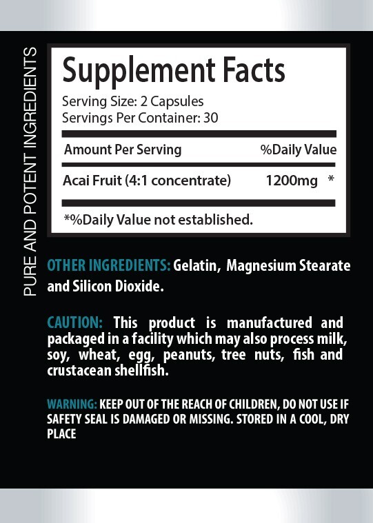 Skin hydration support - ACAI BERRY - Brain function support 1 Bottle 60 Capsules ACAI BERRY Supports Cognitive Function Supports Healthy Skin Boosts Energy Levels Helps in Digestion BOOSTS ENERGY LEVELS: Acai berry supplements are popular for their ability to provide a natural energy boost. Rich in antioxidants and nutrients, they help the body combat fatigue and improve overall stamina. Regular consumption can lead to increased vitality throughout the day, making it easier to stay active and alert, whether you're working out or managing daily tasks. SUPPORTS HEALTHY SKIN: The antioxidants found in acai berries play a significant role in promoting a healthy and radiant complexion. By helping to protect the skin from environmental stressors, these supplements can contribute to a smoother, more youthful appearance. They may also assist in maintaining hydration, making the skin look fresh and vibrant. HELPS IN DIGESTION: Acai berries are a great source of fiber, which supports digestive health. Incorporating acai supplements into your diet can help promote regularity and improve gut function. With better digestion, the body can absorb nutrients more effectively, enhancing overall well-being and comfort. SUPPORTS COGNITIVE FUNCTION: The nutrients and antioxidants in acai berries are also known to support brain health. Acai supplements may help improve focus, memory, and overall mental clarity. This natural brain support can help you stay sharp, whether at work, school, or in daily activities that require concentration and quick thinking.