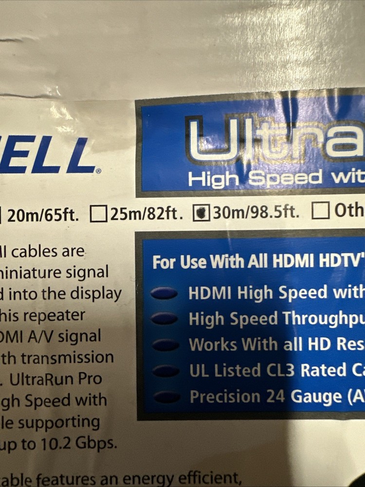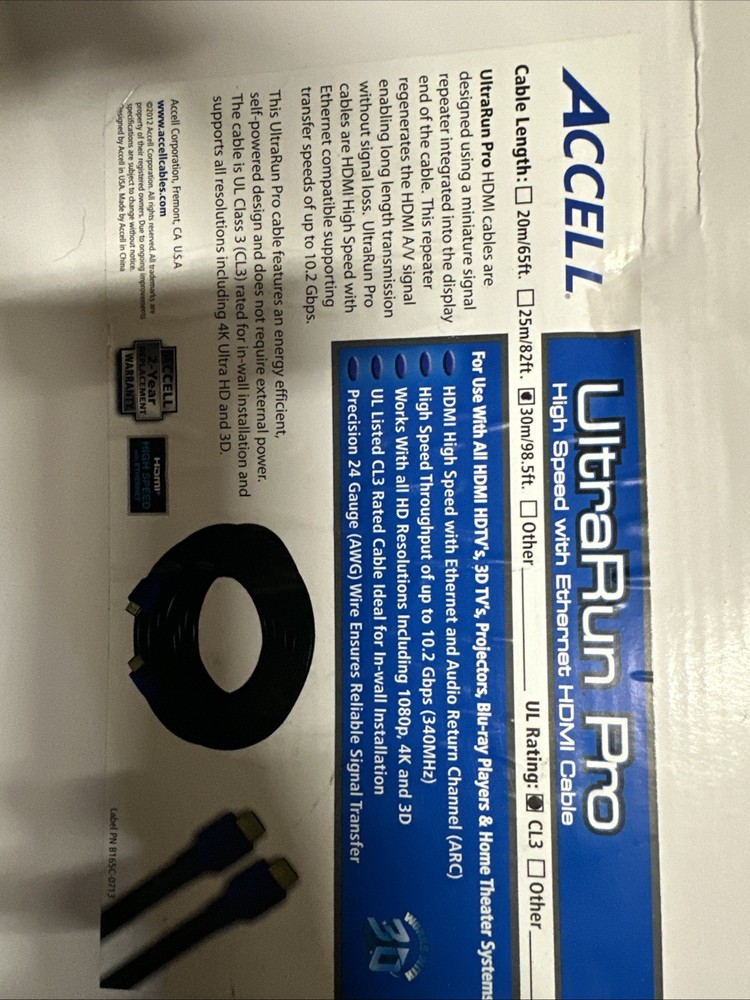 Accell UltraRun Pro 98 Feet - CL3 Rated HDMI cable with Ethernet Repeater