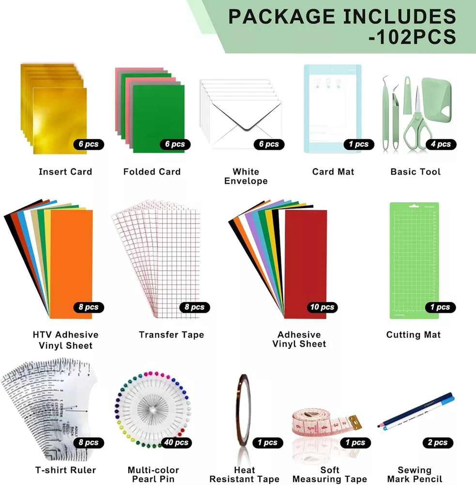Accessories Bundle for Cricut Joy-Accessories and Supplies Include Card Kit, Vinyl Sheets, Joy Mat and Weeding Tools NOT DELIVERED TO MIAMI-DORAL-Warehouse- PO BOX - OUT OF STOCK ADDRESS. All order use Stock address and PO box address will be cancel Specifications : All-in-One Crafting Bundle:Explore endless creative possibilities with our 102pcs accessories bundle for Cricut Joy. Covering a card-making kit, HTV and a T-shirt rulers kit, adhesive vinyl sheets kit and a weeding tools kit, this bundle empowers you to dive effortlessly into any project Explore Limitless Creative Fun:We've equipped you with all the tools and supplies needed to design cards, clothing, and other items, allowing you the freedom to create as you want. With our exclusive T-shirt rulers kit, achieve flawless designs every time Diverse Applications & Superior Quality: Unleash your creativity everywhere! Our Accessories Bundle enable designs on cards,pillows, clothing, invitations, cups, and more. Sturdy, waterproof materials ensure longevity. They are also easy to cut, weed, and transfer, allowing effortless crafting of your vision onto any surface Easily to Start Your Crafting:Embark on a crafting journey with ease! Our starter kit, complete with comprehensive manuals, unravels the artistic world, guiding you step-by-step to ignite your passion for crafting Product Description: Perfect Gift:A unique gift both to yourself and the people you love:The kit is a caring gift with beautiful packaging, which can be used not only to create exquisite crafts by yourself, but also for birthdays, Christmas and other occasions. Shipping & Handling: Processing Time: 3 – 5 business days. Standard US Shipping Time: 2 - 9 business days. Shipping Time WW: Average 7 - 10 business days, maximum 15 business days for some location. Term of Sale: We reserve the right to deny payment from unverified PayPal accounts or any suspicious or fraudulent activity. We reserve the right to end the auction earlier when there is problem with the item. We will make refund / reshipment if there's defect on our product or if we sent the wrong size/product code. Buyer should send picture(s) of the item(s) that have problem for our reference. Shipping charges are not refundable. Feedback: Positive feedback will be given once payment received. If you are satisfied with our product please kindly leave us a positive feedback and good ratings. If you have any issue / problem with our product, please contact us and give us a chance to solve your problem before leaving any neutral or negative feedback. Contact Us: Should you have any question please do not hesitate to send message on eBay. We will reply you within 24-48 hours and make sure you will have a good experience having business with us.