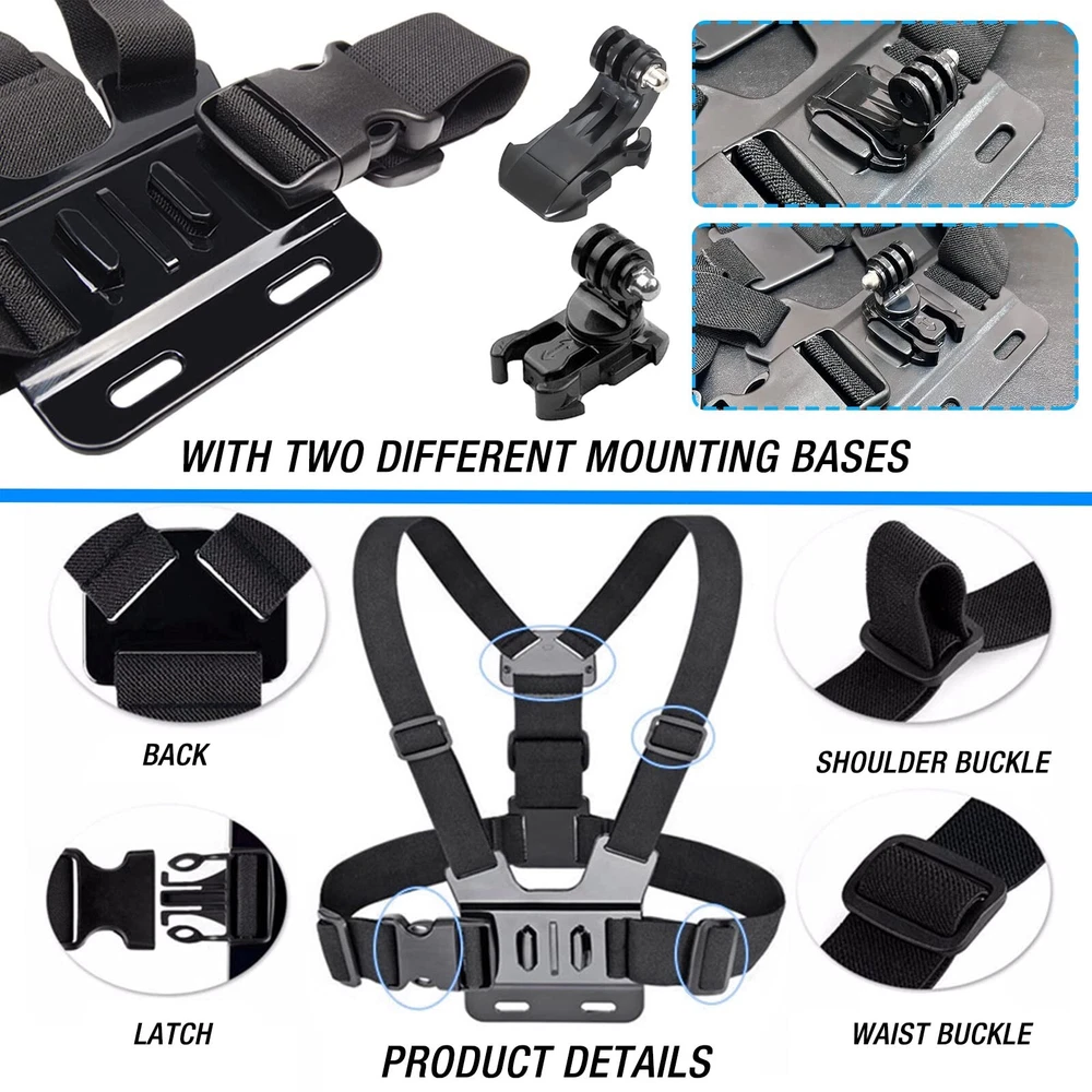 Accessories Kit for Insta360 One X3 X2 X RS R GO 2, Head Strap Mount + Chest Mount Harness + Backpack Clip Holder + 360°Rotating Wrist Strap Compatible for GoPro Hero 12 11 10 9 8 7 Product Details Style: Chest Mount Harness for Insta360 Brand: Sruim MPN: Does not apply UPC: Does not apply EAN: Does not apply Brand: Sruim Color: black Compatible Devices: Gopro hero 12 11 10 9 8 7 6 5 4 3+ Max Fusion Cameras, Insta360 ONE X3 X2 X RS R GO 2 3, DJI OSMO 2 3 4 See more Mounting Type: Chest Mount Special Feature: Adjustable Package Dimensions: 10.31 x 8.58 x 2.28 inches Item Weight: 14.4 ounces Date First Available: March 22, 2023 Manufacturer: SRUIM Country of Origin: China The head strap and chest strap are made of nylon and soft elastic microfiber comfortable, non-slip, adjustable, better experience. The wrist band supports and backpack clamp support 360-degrees rotation, Action camera angle easy adjustable, It is an ideal companion for your camera during your travelling. The accessories kit includes a chest mount, backpack clamp mount, head strap mount, wrist strap mount, 2 x Quick release base that can rotate 360 degrees, 2 x J Hook Buckle, 2 x Tripod Mount Adapter, 4 x Screw. Compatible for Insta360 ONE X3 X2 X RS R GO 2 3, GoPro Hero 12 11 10 9 8 7 6 5 4 3+ Session Max Fusion and DJI OSMO Action 4 3 2 etc other most action cameras. Ideal for hiking, climbing, cycling, exercise, hunting, skating, skateboard, water sports, winter sports etc. Accessories Kit for Insta360 One X3 X2 X RS R GO 2, Head Strap Mount + Chest Mount Harness + Backpack Clip Holder + 360°Rotating Wrist Strap Compatible for GoPro Hero 12 11 10 9 8 7