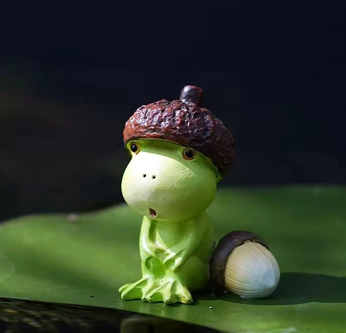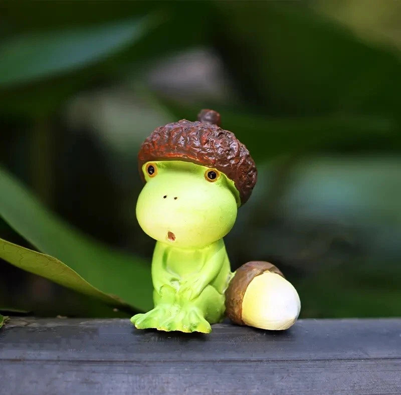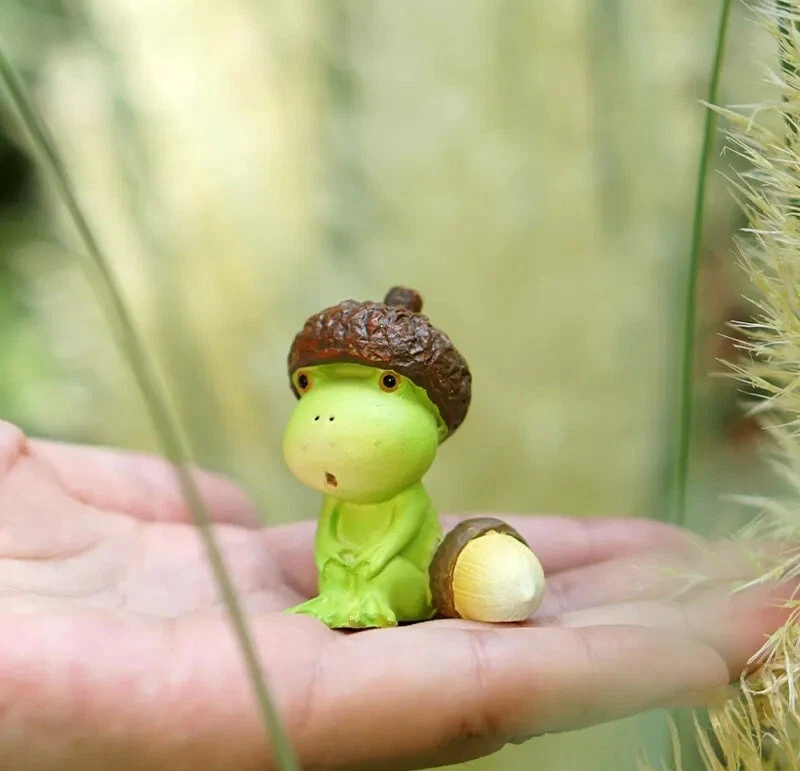 Acorn Hat Frog Miniature Fairy Garden Statue Resin Small Figurine Decor Gift