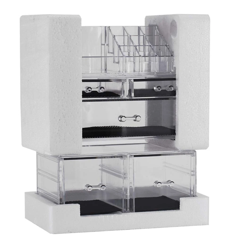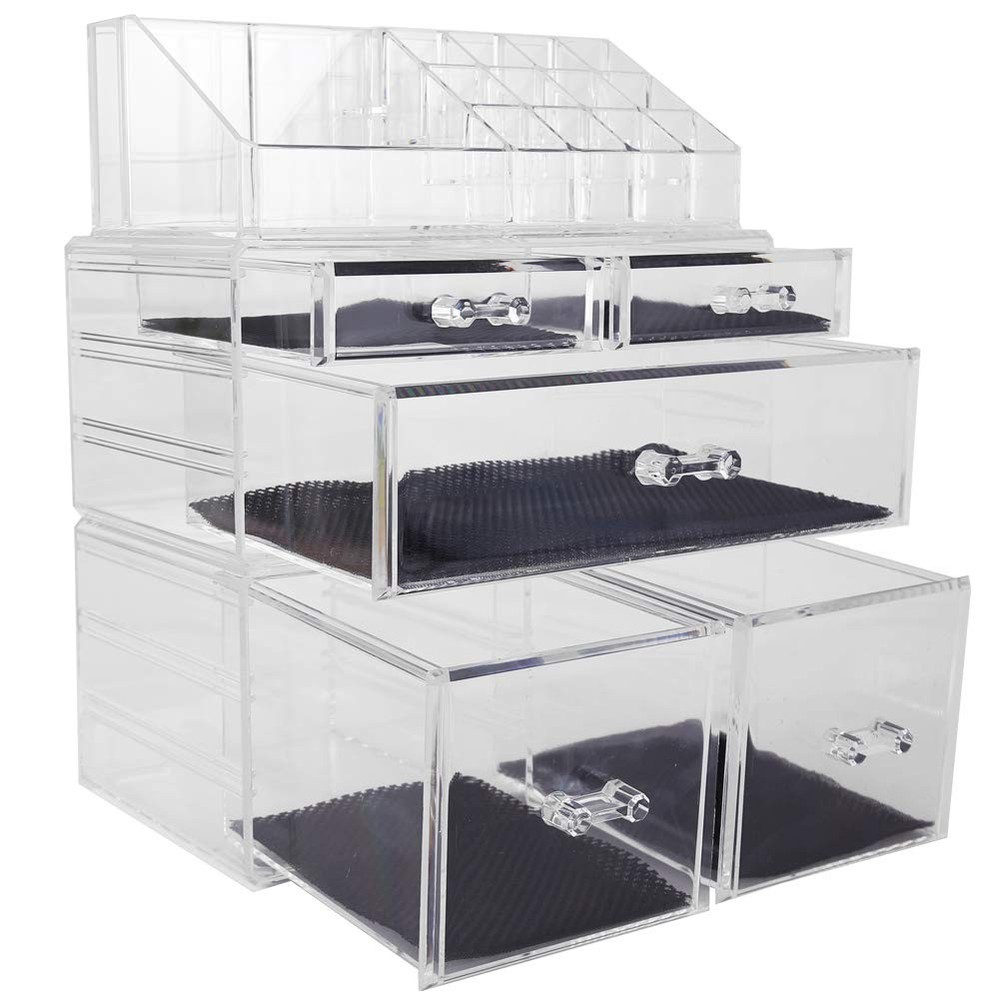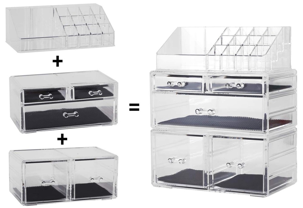 Product Details Color: Clear Material: Pure heavy duty high quality clear acrylic Type: Makeup organizer Product Dimensions(approx.): 9.5x6x12 inch Package included: 3x Makeup organizer,each of which can be used individually Note: Makeup shown in the photos is not included Our Brand Our makeup and beauty product organizers make a great gift idea for friends & family. Inspired by professional makeup artists, you will notice the difference in all products when compared to the industry standard.From design to durability to functionality. Imagine owning a high quality and durable makeup organizer that you will be instantly satisfied with and every day after. Our products are tailored to match a wide range of decor, whether it be in your personal bathroom, a vanity area or your salon Please note beauty makeup products inside acrylic storage container shown are not included.Choos us, ! Our Products Our clutter free organiztion series covers a wide range of capacity and usage. the small size ones would be perfect for lipsticks, brow pencils, eyeliners, mascaras, and makeup brushes,manicure. The medium type would be great for storing primer,eye shadow palettes, bronzer/blush palettes, and press/loose power. The large cases are made to accommodate large foundation bottles,full size perfume or products close in size and more. What's more,the acrylic storage organizer is not limited to only storing makeup. It can also be used to store and display skincare products, jewelries,nail polishes,beauty tools, office suppliers, sewing notions and more. The versatile and stylish design matches any décor! 5 Drawers Makeup Organizer:Removable black mesh padding keeps jewelry protected and in place. Completely removable drawers slide out smoothly, Organizes all jewelry and cosmetics in one place. Each of Which Can be Used Individually. Unique Design : Drawers open and close with ease. Acrylic Makeup organizer matches any decor, is idea for confessional and home use. The Acrylic Makeup Organizer is simply cleaned . Easy to Clean: Unlike other cosmetics or jewelry boxes that retain stains or colorization from your makeup, rings, or earrings, organizes all your makeup and cosmetics into a dazzling personalized beauty counter, our acrylic boxes are easy to clean and won't discolor over time. Durable Acrylic: The acrylic organizers is made from premium acrylic, which means it’s thicker and more durable than your average makeup storage boxes and jewelry cases. Customer Satisfaction Guaranteed: If quality and Transport damage problems can enjoy unconditional choose a replacement or refund serivce.