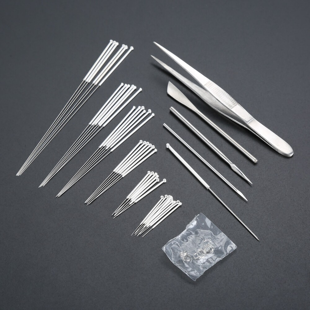 Description: 1. Acupuncture needle has Smooth and sharp pinhead, it causes only a little bit resistance when inserting into the skin which makes patients feel no pain. 2. The products are reusable and should be disinfected before and after each use.. 3. Package includes: Acupuncture needles 0.30×13mm 3pcs 0.30×25mm 3pcs 0.30×40mm 3pcs 0.30×50mm 3pcs 0.30×75mm 3pcs 0.35×13mm 3pcs 0.35×25mm 3pcs 0.35×40mm 3pcs 0.35×50mm 3pcs 0.35×75mm 3pcs Round sharp needle 0.80*40mm 1pcs Prismatic needle 2.6*65mm 1pcs 1.6*66mm 1pcs Thumb tack needles 0.25*5mm 10pcs Press needles 0.25*7.5mm 10pcs Dermal Needle single head 1pcs Scrapping knife 2.3*70mm 1pcs Holding needle tweezers 100mm 1pcs On Mar 14, 2025 at 21:00:34 PDT, seller added the following information: On May 6, 2025 at 20:46:21 PDT, seller added the following information: On Jun 8, 2025 at 20:38:30 PDT, seller added the following information: On Jul 22, 2025 at 20:16:33 PDT, seller added the following information: On Nov 2, 2025 at 09:22:28 PST, seller added the following information: On Nov 23, 2025 at 19:27:27 PST, seller added the following information: