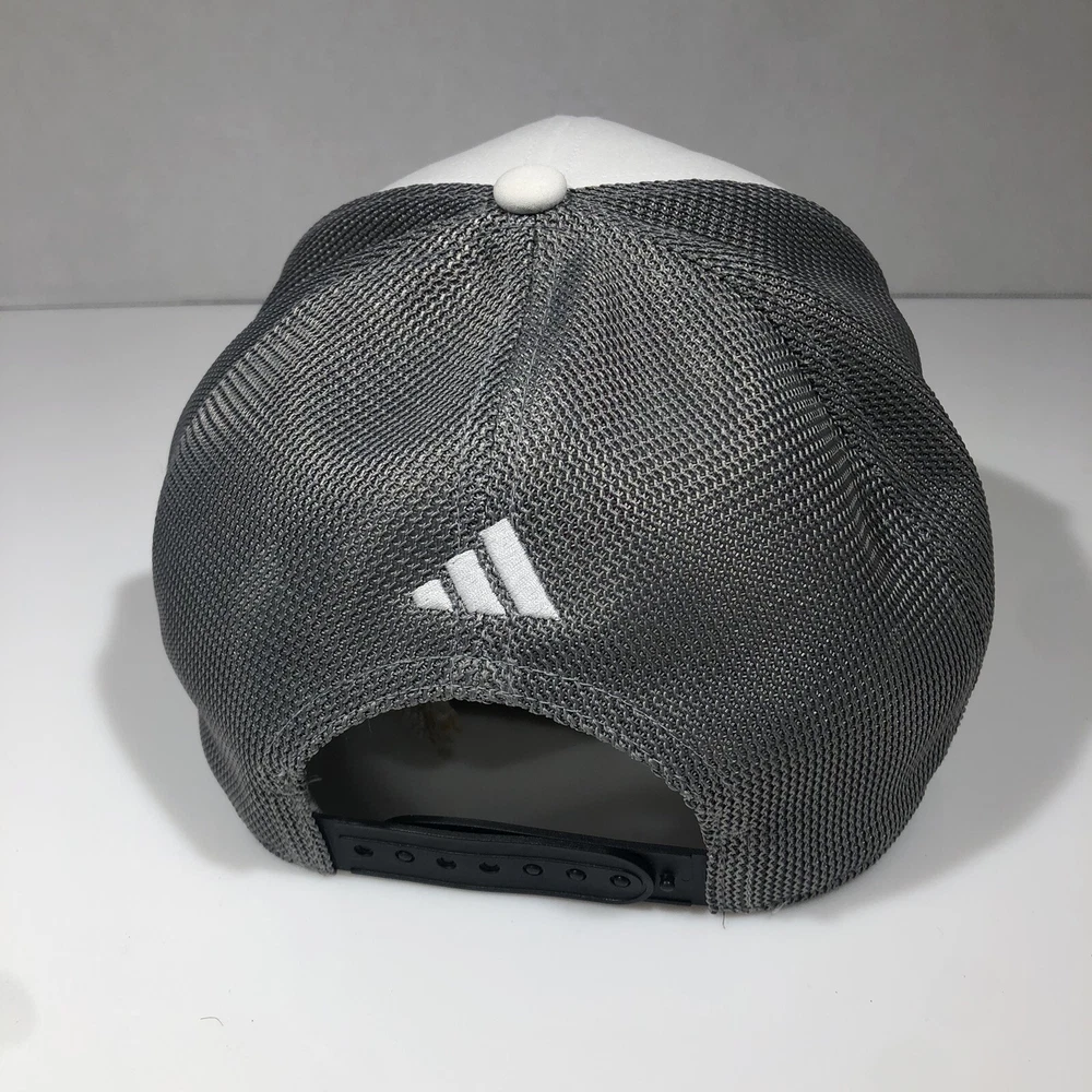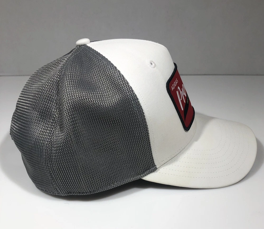 This Adidas trucker hat is the perfect addition to any casual outfit. The white color and solid pattern make it a versatile accessory suitable for any occasion. The hat is designed with a mesh back and adjustable strap to ensure a comfortable fit for all head sizes. The hat is made in Vietnam and features the Adidas brand logo on the front. It is lightweight and perfect for outdoor activities such as sports and hiking. The trucker hat is a classic style that never goes out of fashion and is suitable for men of all ages. Has some spots on it but could come out with care see pictures.