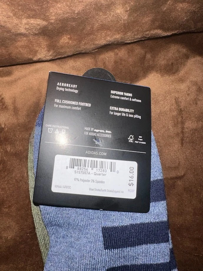 Adidas Men's Cushioned Socks 3-pair Size 6-12 97% Polyester 3% Spandex