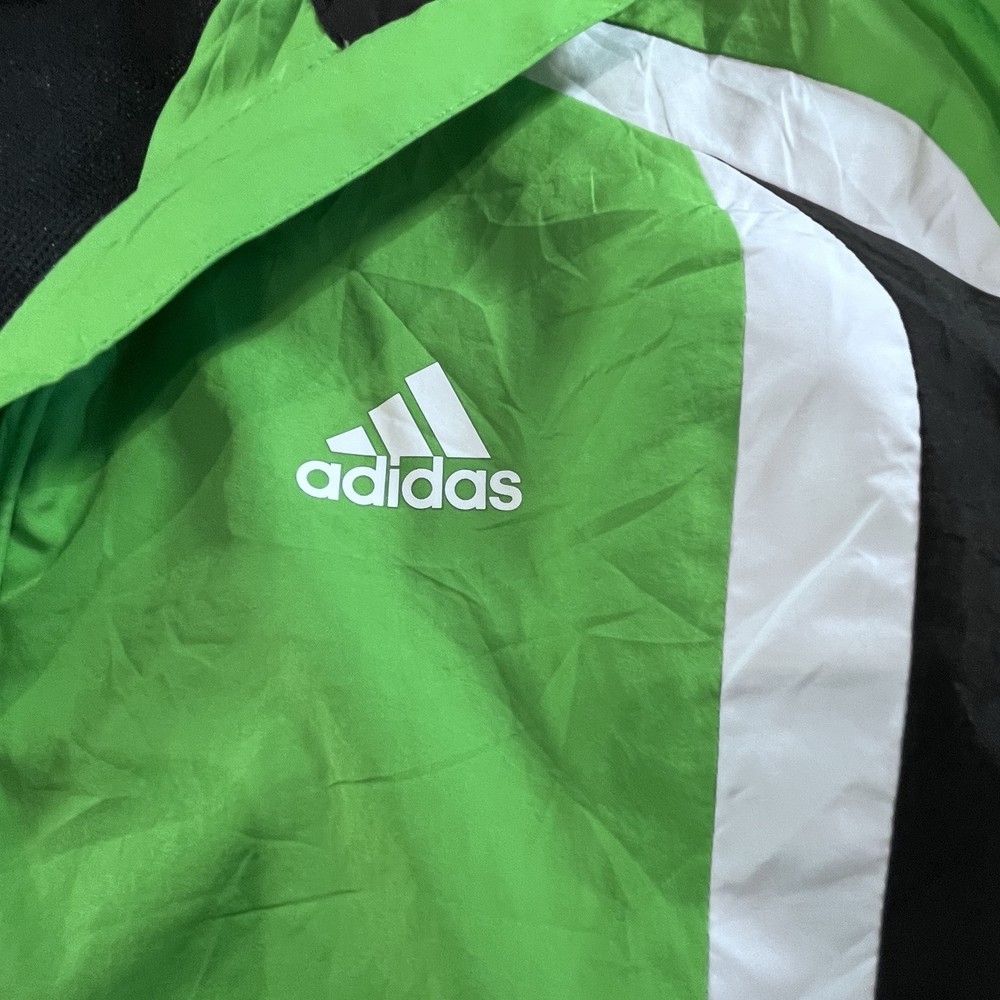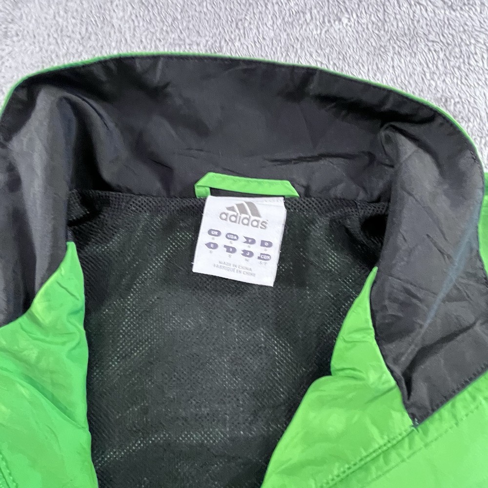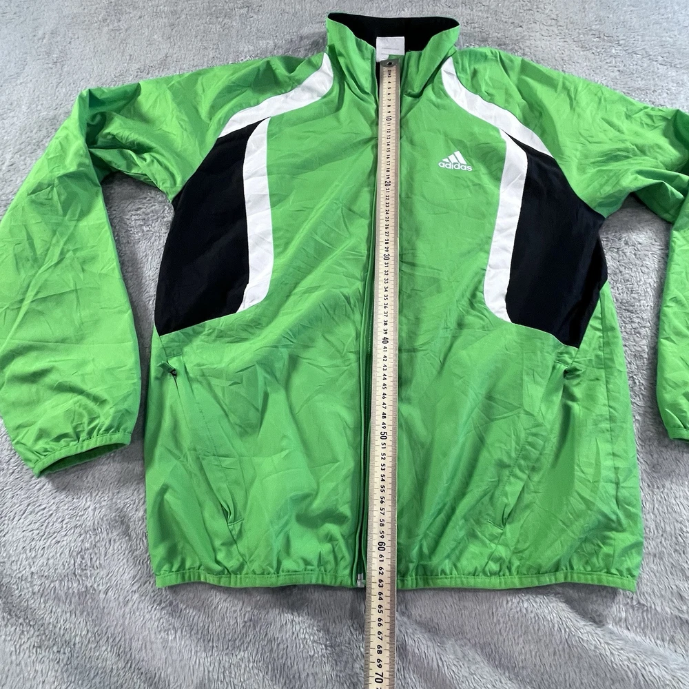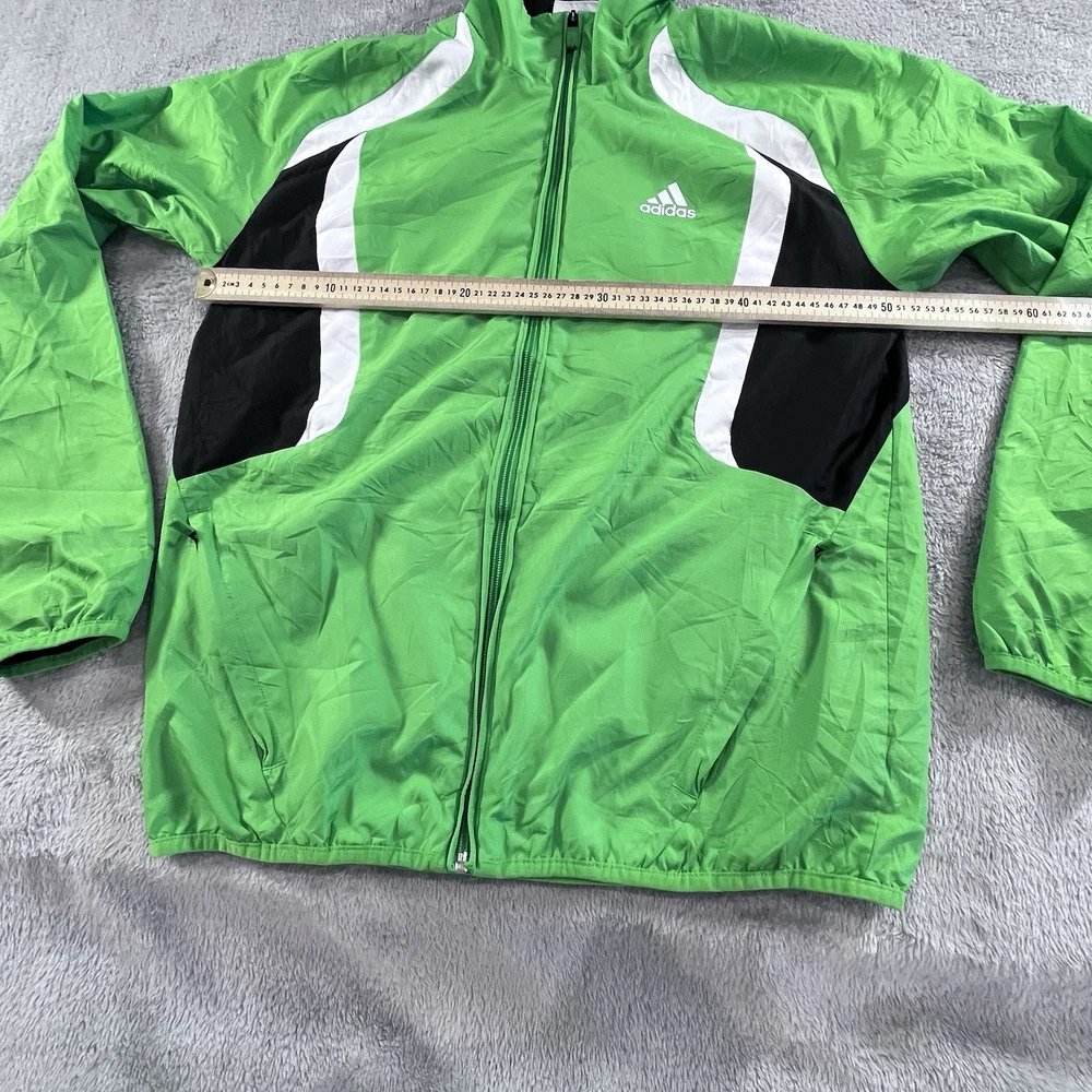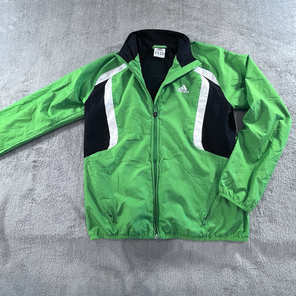 Adidas Jacket Mens Small Full Zip Windbreaker Green Y2K Activewear Athleisure Pit to pit - 51cm Length - 63cm Sleeve length - 76.5cm ——————————————————————————— Please see photos for condition. Also see measurements if applicable. Check out my other listings! All clothing have been washed and cleaned. All items are sent by tracked mail Vintage / secondhand items possibly show signs of age. See images for any wear, fading, stains, holes, marks or damage.