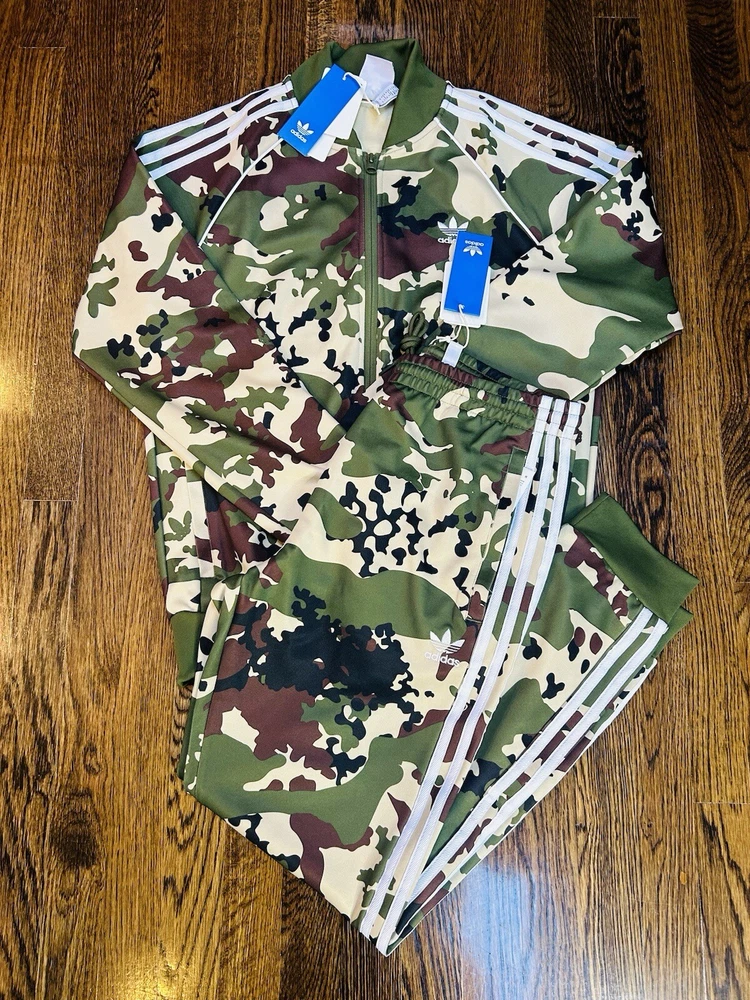 This Adidas Originals tracksuit is perfect for any active man looking for comfort and style. The two-piece set includes track pants and a track jacket, both made of 100% polyester blended fabric for durability and easy movement. The camouflage pattern adds a touch of military style, while the pockets provide ample storage space for your essentials. The tracksuit is designed for all seasons and occasions, making it versatile and practical. The size is medium and the style is trendy, with a mix of Army, Marine, Bape, Yeezy, Kith, and Supreme influences. The tracksuit is made in Vietnam and is perfect for men who enjoy military-inspired clothing.