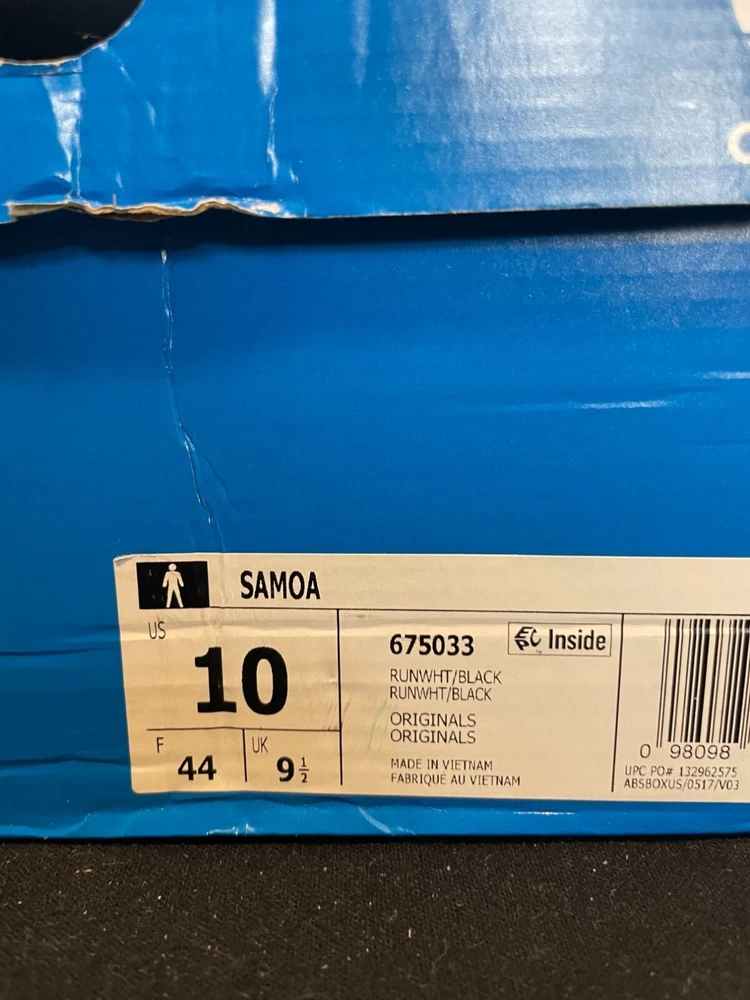 Adidas Originals Samoa Mens Size 10 Shoes White Black Classic Sneakers 675033 CONDITION : NEW: Brand New With Box. Please refer to photos or for more details. Sanitization Disclaimer: Fanatikicks is committed to the sanitization of all our products to ensure safety and cleanliness for our customers. All sneakers available for purchase have been professionally cleaned and disinfected by our sneaker restoration team prior to listing for sale. Feel free to message us.
