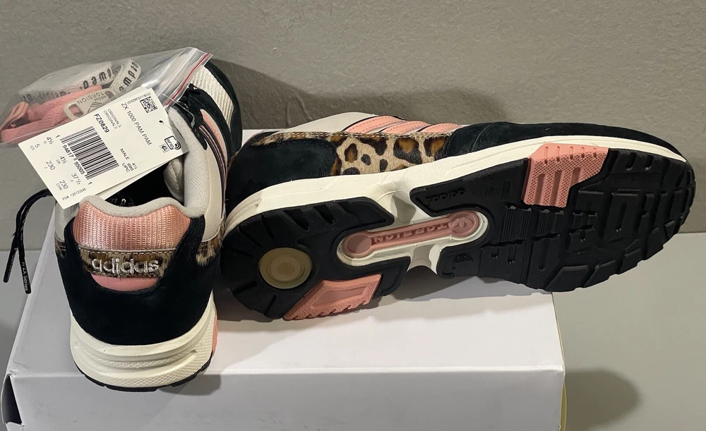 Step out in style with these Adidas ZX 1000 Pam Pam Leopard Trace Pink Core Black FZ0829 Sneakers. The unique animal print pattern adds a touch of personality to your wardrobe, while the standard shoe width ensures a comfortable fit for any occasion. Perfect for activewear, casual wear, and workwear, these sneakers are versatile and practical. Crafted with quality materials, these Adidas ZX sneakers are built to last. The low top shoe shaft style and athletic design make them suitable for walking and other activities. With a year of manufacture in 2020, these sneakers are modern and up-to-date. Don't miss out on this opportunity to add a stylish and functional pair of sneakers to your collection.