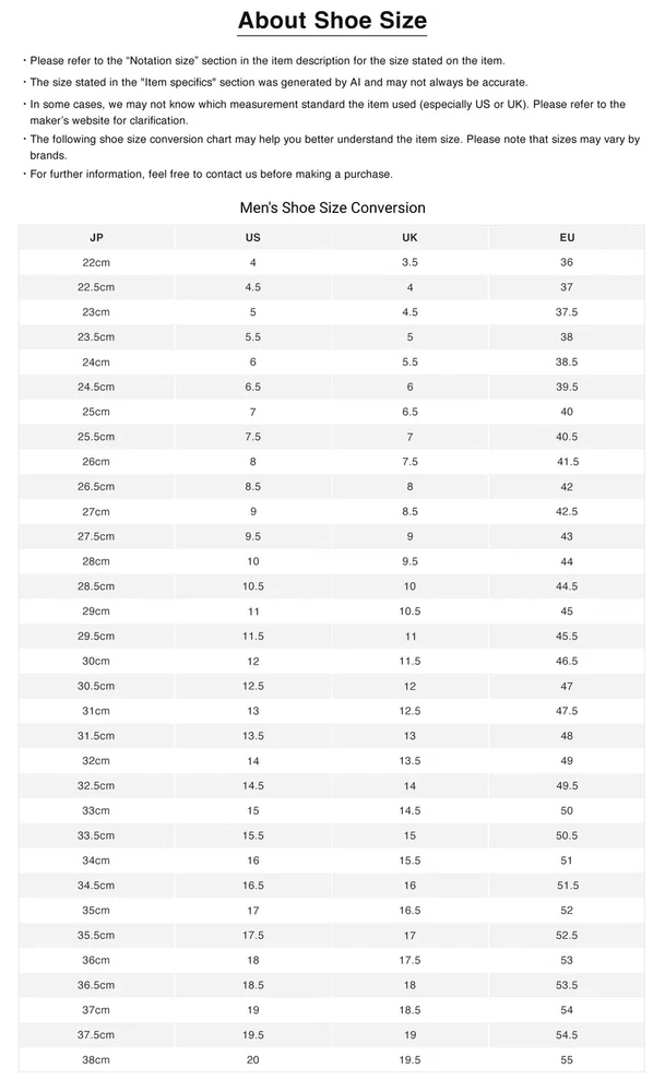 • Before purchasing, please read this page in conjunction with the notes at the bottom of the page, and by placing an order and making payment, you agree to be bound by the product conditions and notes. • International shipping will be facilitated through our central shipping center in Japan. Please allow approximately 10 business days for us to handle the item, from dispatching it from our local store to preparing it for international shipping in our central shipping center. • Tracking number will be provided only after the item reaches our central shipping center in Japan. • Item details and descriptions have been translated by AI, so occasional mistakes may occur. If you encounter any issues, please don't hesitate to reach out to us. PRODUCT INFORMATION Brand adidas Style Sneaker Department Men Type Athletic Color Black Product Line Others Character Others Vintage No Customized No Theme Others Model Others Country/Region of Manufacture Unknown Shoe Shaft Style Low Top Upper Material See Description US Shoe Size 8 UK Shoe Size 7.5 EU Shoe Size 41.5 Others ■Product name adidas adidas low top sneakers 26 ■Damage Details There is dirt and wear on the outsole There are threads and dirt on the midsole There is dirt on the shoelaces There are dust stains and slight fine hairs adhering to the inside and insoles There are dirt, threads, wrinkles, and loss of shape on the surface There is a thread on the opening ■Item Details Brand: adidas Model: Stan Smith Remarks: Outsole: 10.5cm Accessories: - *Since this is a used item, accessories such as ribbons and replacement belts may not be available when purchasing a new product. Part Number: M20327 Category: Mens-Fashion-Shoes-Sneakers-M Color: Black ■Size Details Notation size: 26 Measured size: M Insole width 10.5cm (4.13 in) About the size Measurements are taken while lying flat. *Two sizes are listed: the size shown (size announced by the manufacturer) and the measured size (size measured by our company). *We apologize for the inconvenience, but we do not re-measure products once they have been posted. *Please allow slight differences due to measurement size. Material: - *Materials may be described in product images Control number: IT6W4VJ4EYPK [Please note] *We cannot accept price reduction negotiations. About Us BOOKOFF is one of Japan's leading second-hand chain, with more than 700 stores across the country. We offer a wide selection of premium branded items, including designer bags, wallets, jewelry, watches, fashion clothing, and more. All items will be thoroughly inspected, carefully packed, and shipped directly from Japan. BOOKOFF is also a member of the AACD (Association Against Counterfeit Product Distribution), an organization which aims to prevent the distribution of counterfeit and fraudulent products, hence buyers can purchase genuine brand items with confidence at our store. All of our items are selected and authenticated by professional authenticators to ensure their authenticity. About Payment • Only eBay managed payments are accepted. • We do not do transactions outside of eBay. Shipping & Taxes • Free Shipping Worldwide. • All items will be shipped via Japan Post with tracking service (EMS or ePacket). • All orders will be shipped from Japan to the registered address on the buyer's eBay account. • Shipments may be delayed due to bad weather, public holidays, customs office delays, and other conditions beyond our control. • All customs duties, import taxes or related fees occurred during shipping are the responsibilities of the buyer. If you have any concerns, please inquire directly with your local customs office before making a purchase. Return & Cancellation Policy • All listed items are also available at our retail store and multiple online platforms in Japan. In the event that an item is out of stock or sold, we will issue a cancellation along with a full refund. • If you wish to return an item for a refund, please contact us directly before initiating a return or opening a case. • For damaged items or discrepancies with the item description, please reach out to us directly within 10 days of receiving the item, providing pictures of the damaged area or issues. • Unless the item is damaged or does not match its description, buyers will be responsible for the return shipping fee. > All returns must be shipped to our address in Japan with a tracking number. > Refunds will be processed once the returned item has arrived safely. • Buyers who violate eBay policies or misuse eBay's Money Back Guarantee will be reported and blocked from future purchases. click here to see our store