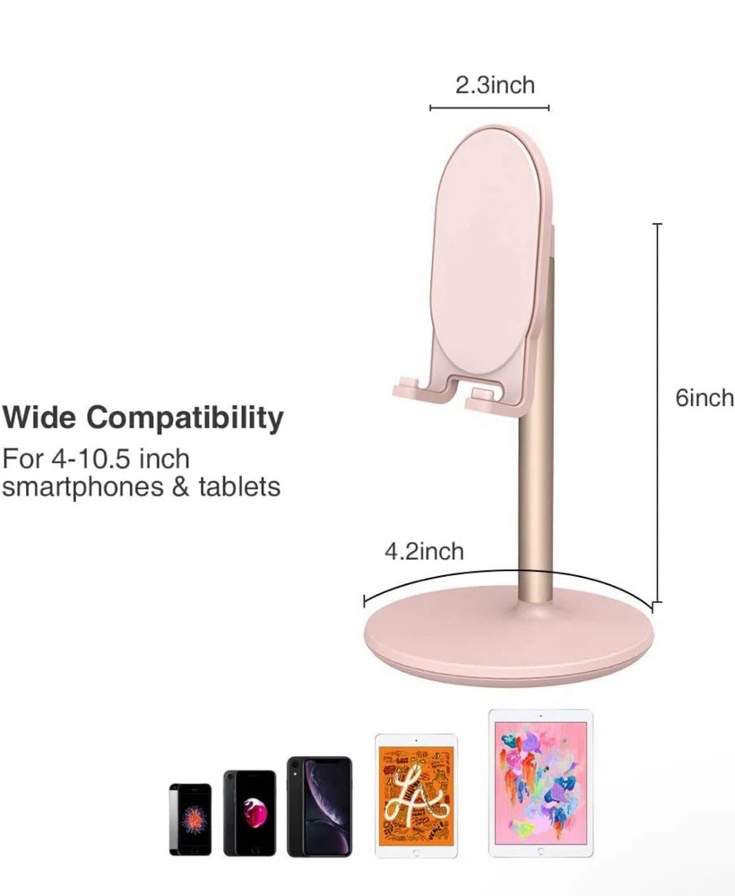 Bright Stone Adjustable Phone Stand for Desk,Compatible w/4"-12.9" Devices Black **Bright Stone Adjustable Phone Stand - Black** **Key Features** - **Brand: Bright Stone - **Color: Black - **Form Factor: Standalone - **Mounting Type: Tabletop - **Compatible Devices: Smartphones & Tablets (up to 12.9 inches) **Compatible Models** - **Apple:** iPhone 11, Xs, Xs Max, XR, X, 8, 7, 7 Plus, 6, 6 Plus, 6s, 6s Plus, iPad mini 2/3/4/5 - **Samsung:** Galaxy S10/S10+/S9/S9+/S8/S8+/S7/S6/S6 Edge/S5/S4/S3, Note 3/4/5/6 - **Google:** Pixel XL/Pixel/Pixel 2/Nexus 6P/5X - **Other Brands:** Motorola, LG, HTC, and more. **Product Highlights** - **Wide Compatibility: Supports all smartphones and tablets up to 12.9", including iPhone, Samsung Galaxy, Android devices, and more. - **Perfect Viewing Angle: Easily adjustable from 5° to 45°, offering both vertical and horizontal viewing options. - **Stable & Secure: Built with premium aluminum alloy, silicone, and ABS, ensuring your device stays in place. Non-slip silicone pads protect your phone from scratches. - **Versatile Use: Ideal for gaming, watching movies, video calls, cooking, reading, and more. Perfect for home, office, or travel use. - **Worry-Free Warranty: We're committed to quality. If you're not satisfied, contact us for prompt assistance and resolution. The Bright Stone Adjustable Phone Stand offers convenience, stability, and flexibility for your smartphone and tablet, whether at home, at the office, or on the go!