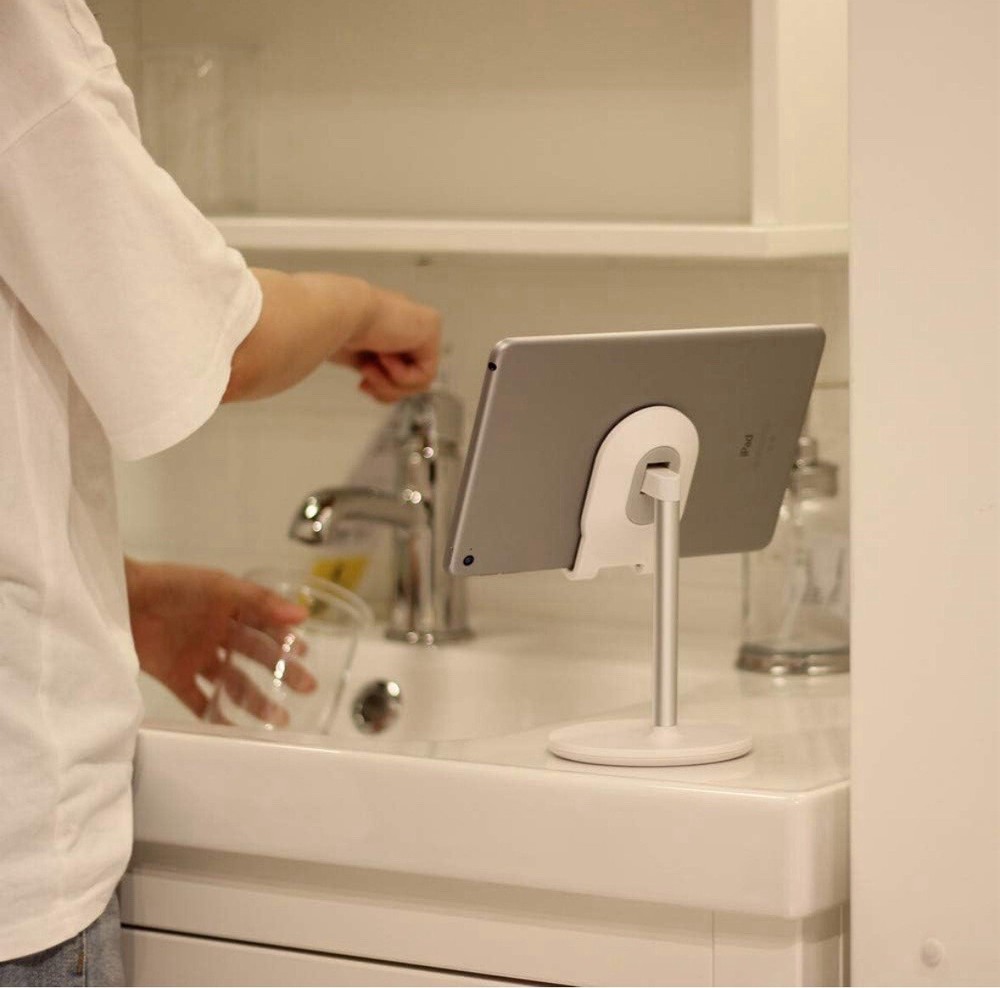 This stand is a game-changer! The sturdy black design holds phones and tablets up to 12.9" securely at any angle. Perfect for watching videos, video calls, or following recipes hands-free. The non-slip base keeps it stable, while the adjustable groove fits everything from iPhones to large iPads. Love how compact yet durable it is—great for desks, kitchens, or travel. No more neck strain! Works flawlessly with my Samsung Galaxy and partner's iPad. A must-have for multitaskers!