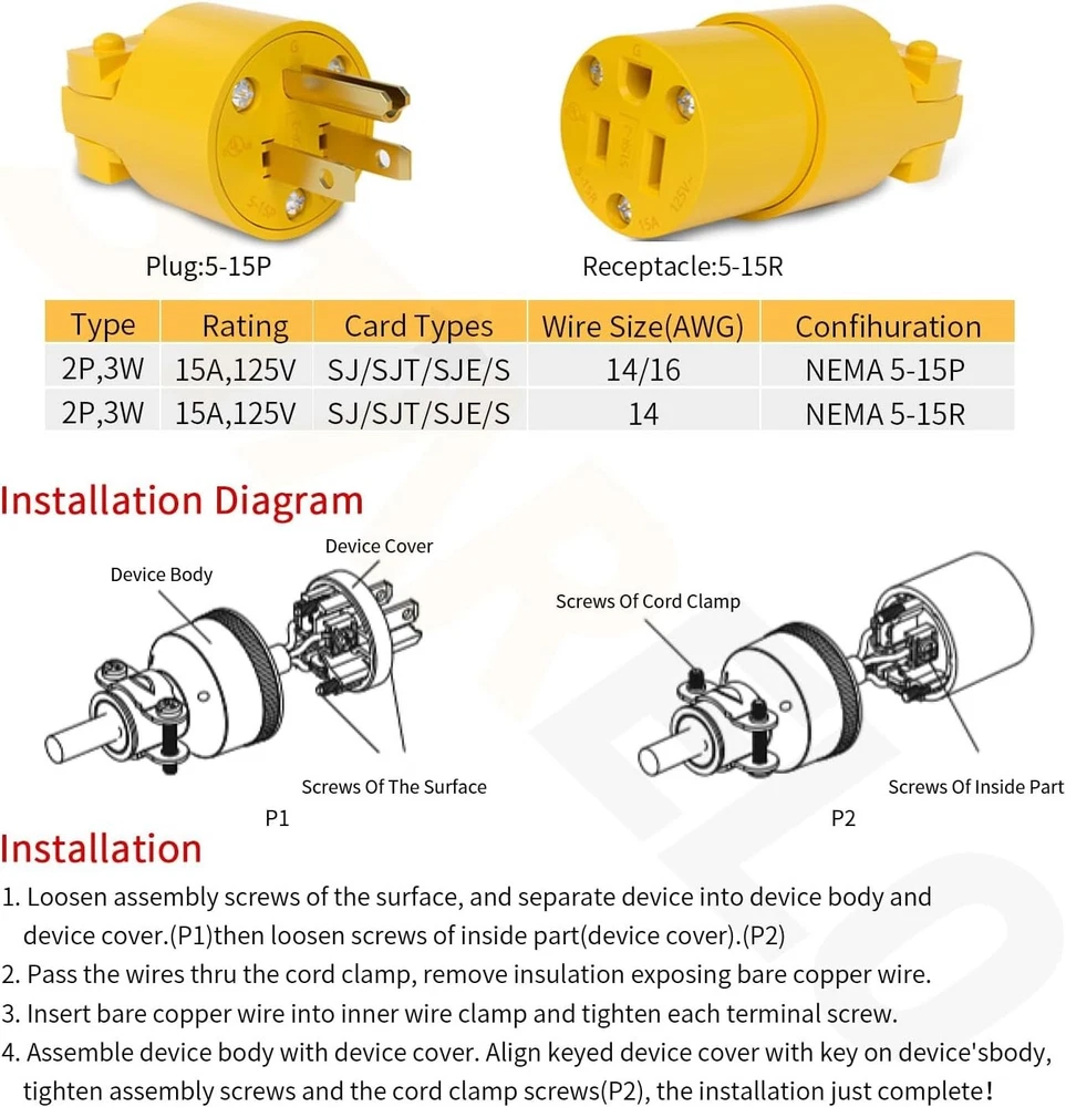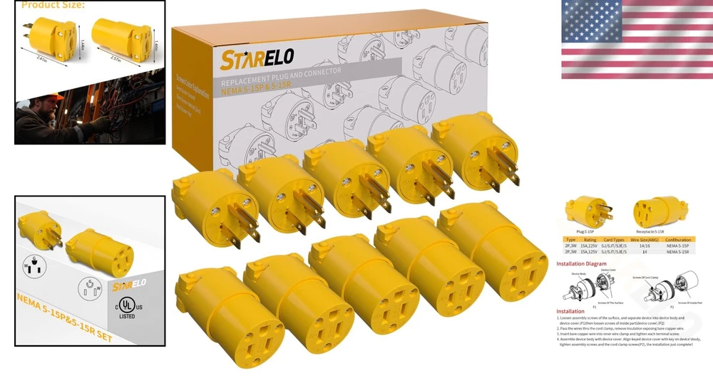 Adjustable Electrical Connector Set – 5 Yellow Plug Ends for Home or Industry ‹ › ‹ › ‹ › ‹ › ‹ › ‹ › ‹ › ‹ › ‹ › Adjustable Electrical Connector Set Perfect for Home or Industry – 5 Durable Yellow Plug Ends Product Features: UL Listed for safety, rated for 125V and 15A. 2 Pole, 3 Wire Grounding Type for seamless use. Equipped with an adjustable rear cord clamp, accommodating varying wire sizes (SJT 16/14). Crafted from high-quality, durable plastic materials for long-lasting performance. Heavy Duty Design: Secures wires firmly, preventing them from pulling out. Includes one set of Male Electrical Replacement Plug & Female Electrical Replacement Connector. Straight blade design is ideal for replacing most household appliance plugs. Provides spare electrical cord ends for emergencies. Recommended for use with multiple strand wires for optimal results. Why Choose Our Adjustable Electrical Connector Set? Restore functionality to your beloved electrical appliances with our Adjustable Electrical Connector Set. This versatile set of 5 yellow plug ends is not just about restoring connection; it's about ensuring safety and reliability. Whether you're addressing home projects or industrial needs, our UL Listed connectors stand ready. Durable and easy to use, these connectors feature an adjustable rear cord clamp designed to accommodate various wire sizes, making them uniquely adaptable to your requirements. With a heavy-duty design, each plug end remains steadfast, securing wires in place and providing peace of mind with every use. Don't stand aside and let broken plugs hinder your appliances. Bring new life back into your electrical devices and empower your projects with confidence. Choose our Adjustable Electrical Connector Set today! Shipping Free & Fast Shipping - We offer free shipping to most of the USA with a normal delivery time of 3-7 days. However, due to the current situation, additional delivery time (up to 3 weeks) may be required for some items. Alternative Carriers - We may use alternative carriers (e.g. USPS, FedEx, UPS, etc.) to ensure your package arrives safely and on time. Due to the use of multiple carriers, we are unable to provide a tracking number automatically. Handling Time - Orders are processed and shipped within 1-2 business days of receiving cleared payment. Shipping Restrictions - Shipping to Alaska, Hawaii, Puerto Rico, Guam, and other US territories may incur shipping charges or delivery restrictions. Please contact us before ordering, or your order can be refunded/cancelled. State Restrictions - There may be restrictions based on your state of purchase. For example, certain items may not be shipped to California due to state regulations. Contact for Tracking Updates - If you require tracking updates or have any concerns about the delivery of your order, please feel free to contact us, and we will be happy to assist you. Return 30-Day Hassle-Free Returns - We want you to be completely satisfied with your purchase. If you are not, you can return the item within 30 days of receiving it for a full refund or exchange. Easy Return Process - To start a return, simply contact us and we will provide you with a prepaid return shipping label and detailed instructions. Restocking Fee - There are no restocking fees for returns. However, the buyer is responsible for return shipping costs if the return is not due to a seller's error. Refund Processing Time - Refunds will be processed within 5 business days of receiving the returned item in its original condition. Payment We accept all major credit cards, PayPal, and Apple Pay for your convenience. Your payment information is secure and encrypted to ensure a safe and seamless transaction. Please complete your payment within 3 days of purchase to avoid any delays in shipping. Feedback Your feedback is extremely important to us. We strive to provide the best products and customer service possible. If you are satisfied with your purchase, please take a moment to leave us a positive review. If you have any concerns or issues with your order, please contact us before leaving negative feedback. We are committed to resolving any problems and ensuring your satisfaction. Contact Us If you have any questions or concerns, please feel free to reach out to our customer support team. You can contact us through the eBay messaging system. We are available Monday to Friday, 9:00 am to 5:00 pm EST, and we will do our best to respond to your inquiry within 24 hours. Buy it now and enjoy a pleasant shopping experience! UPC: Not Set Unit Quantity: 1.04 lb Features: Heavy Duty,Adjustable Rear Cord Clamp,Industrial Grade,Straight Blade,Grounding Type Smart Home Compatibility: Not Applicable/Not Available Smart Home Protocol: Not Applicable/Not Available Brand: Unbranded Number of Outlets: Not Set Type: Electrical Plug Output Voltage: 125 V Input Voltage: Not Set Maximum Input Current: 15 A Plug Type: Type B Maximum Compatible Appliance Wattage: Not Set MPN: Not Set Voltage Conversion: Not Set Unit Type: lb Color: Yellow Material: Not Set Recommended Environment: Indoor Country/Region of Manufacture: Not Set Resistance Properties: Not Set Cable Length: Not Set Manufacturer Warranty: Not Set