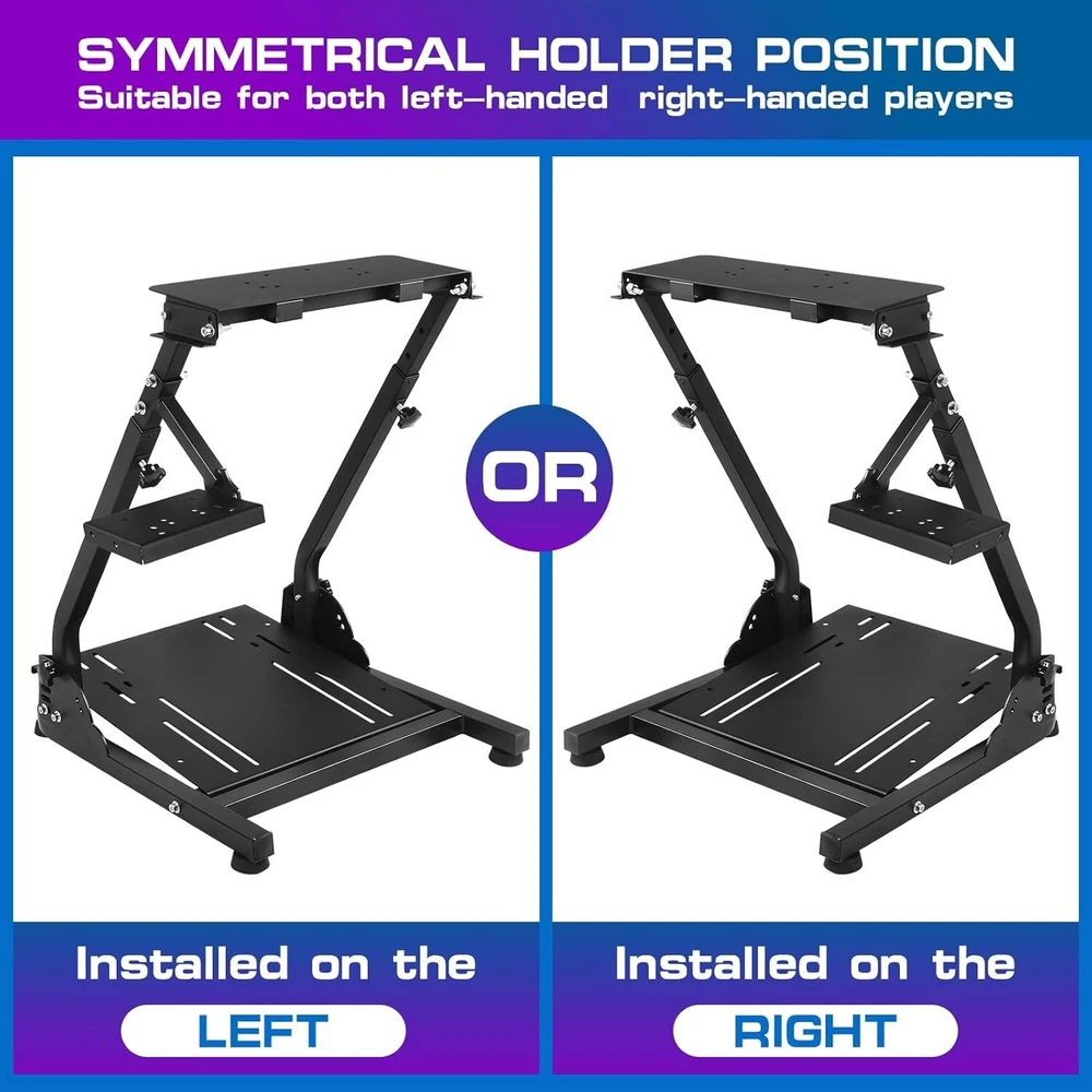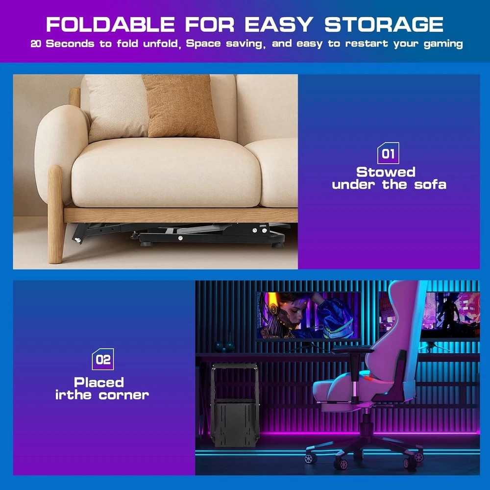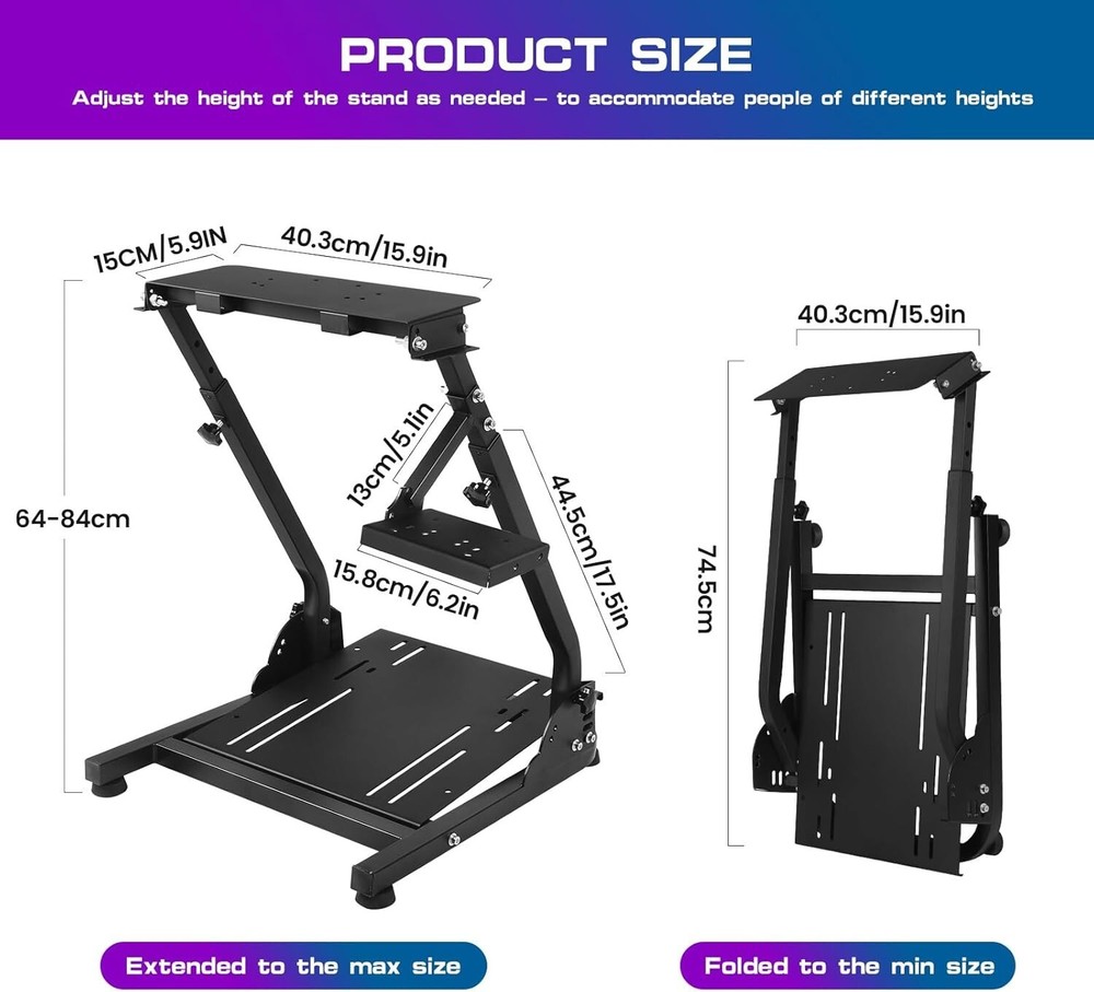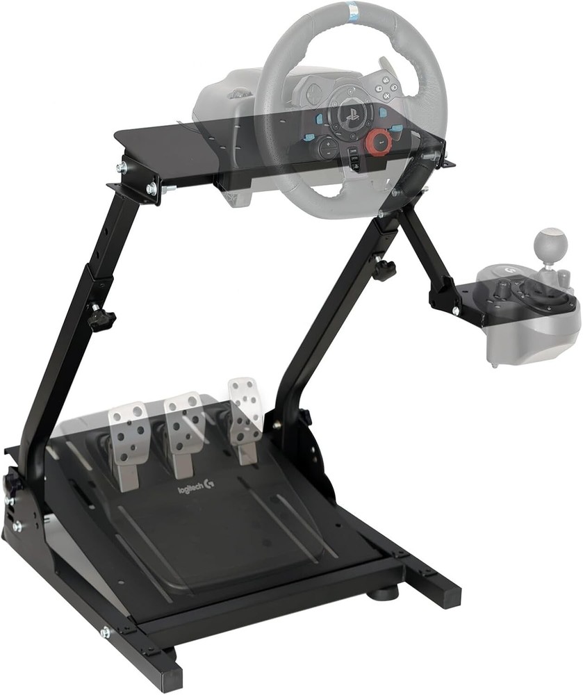 This racing wheel stand is a game-changer for sim racing fans! The adjustable height and angle make it super comfortable, and it folds up neatly when not in use. Works flawlessly with my Logitech G29—super sturdy with no wobble during intense races. Super easy to set up, and the compact storage is a huge plus. Highly recommend for anyone serious about their racing setup!
