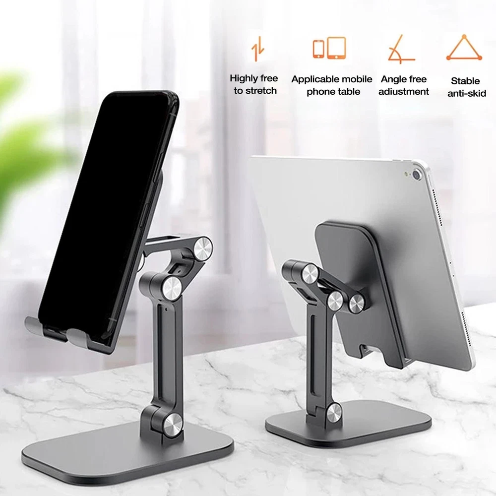 This adjustable folding stand is a game-changer for my desk setup! It securely holds my phone and tablet at the perfect viewing angle, whether I'm working or watching videos. The foldable design makes it super portable, and the sturdy base keeps everything stable. Love how it prevents neck strain by elevating my devices. The wide compatibility means it works with all my gadgets, and the smooth angle adjustments make it effortless to find the ideal position. Highly recommend for anyone who uses devices at their desk!