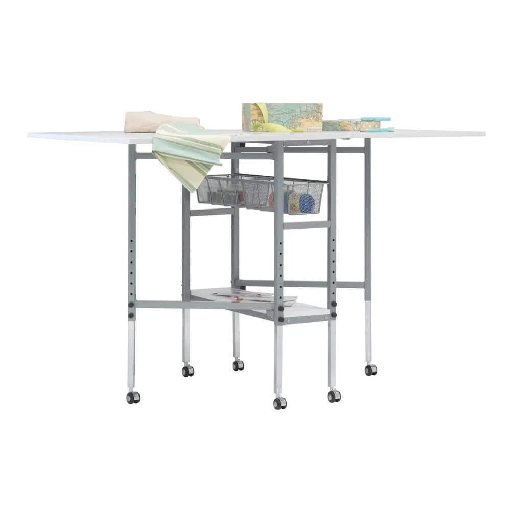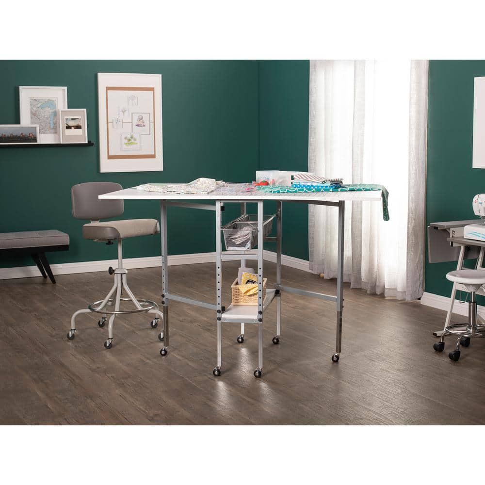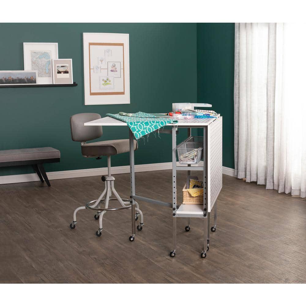 58.75 In. W X 36.5 In. D MDF Folding Fabric Cutting Table, Drawers, Grid And Guides Top, Adjustable Height, Silver/White Store New Arrivals Add to Saved Sellers View Feedback Contact 58.75 In. W X 36.5 In. D MDF Folding Fabric Cutting Table, Drawers, Grid And Guides Top, Adjustable Height, Silver/White Grid with inches, centimeters, and more for efficient sewing Measures 58.5 in. W x 36.75 in. D x 30.25 in. H 2 slide-out mesh drawers and a shelf for seamless storage Folding, Height Adjustable Quilting, Fabric Cutting Table with Grid Top and Storage by Sew Ready allows you to set the height of the large, expanding top to the perfect height. The sewing grid inches, centimeters, angles, radial lines for your quilting or sewing projects. The casters make it easy to move aside for more space in your sewing studio. When fully extended this hobby table offers a work surface that is 58.50 in. W and 36.75 in. D making it ideal to spread-out, cut or adjust fabric and patterns. Wire mesh drawers and bottom shelf offer storage for sewing or craft supplies. The table top height can be adjusted from 30.25 in. to 39.25 in. to provide back relief on long projects. The versatility of this table makes if perfect for: cutting fabric, craft or hobby projects or as a general extra workspace. Color/Finish: Silver / White Lid Color: No Lid Pack Size: 1 Style: Modern Product Depth (in.): 36.50 in Product Height (in.): 38.75 in Product Width (in.): 58.75 in ABOUT US Customer service is our top priority! Please be sure to read the description thoroughly to make sure that this is the item you want before making a purchasing decision. If you have any questions about this item, please contact us via eBay messages before placing your order. We make every effort possible to accurately describe and depict the items. Please be aware that slight variations in color may be due to differences in lighting and computer monitor resolutions. All items are in stock at the time of listing; however, in the unlikely and unforeseen event that we are unable to fulfill your order through any of our networked warehouses, we will notify you as quickly as possible and offer you a 100% refund on your purchase. Thank you for shopping with us. We appreciate your business! SHIPPING We provide fast, free shipping. Most items are shipped within 3-5 business days of receiving cleared payment. We ship to the lower 48 contiguous United States only. We do not ship to P.O. Boxes or APOs. For select items, we ship internationally through eBays Global Shipping Program. We do ship most of our smaller items internationally using eBays Global Shipping Program. If ordering electrical items outside of the U.S., please note that they will come equipped with a standard U.S. voltage plugs. You will need a suitable adapter to use the item in your country. Certain restrictions apply. Standard or Economy Shipping is ALWAYS FREE! You will be notified via eBay messages as soon as your items ship. Special Notice for Freight Items: If an item ships via Freight (Truck) Delivery, a valid phone number will be required so that we can contact you to schedule delivery. The item may be delivered with curbside delivery. An adult signature will be required. Please be sure to have available help on hand to assist you with moving the item to the desired location in or outside of your home. Freight items must be inspected upon delivery. In the unlikely event that damage is observed, you MUST refuse delivery and note the damage on the shipping receipt and send it back via the Freight carrier. Returns will not be accepted on Freight items after they have been delivered, inspected, and the driver has left the premises. RETURNS When returning an item, it must be in all of the original packaging and include all of the original accessories or items that came with it. The item and package should be in original and perfect condition. You will be required to cover shipping on the return of non-defective items. All returns MUST be done within 30 days of date of purchase. Please note that we cannot give refunds or replacements after the 30 day limit has expired. When sending in a return, please note that it can take up to 7 business days for the return to be processed. We do our best to process as quickly as possible. We are extremely fair, and in the rare event of something out of the ordinary happening with our products or shipping, we will gladly work with you to find a fair resolution. PAYMENT We accept all of the standard payment options offered at eBay checkout. To provide a safe experience, eBay only allow payment methods that offer strong protection for buyers and sellers. Your order will be processed pending receipt of cleared payment. Sales tax may be charged depending on your location. DISCLAIMER We are sorry, but we do not honor product exchange requests. If you need to exchange an item received, you will need to go through the normal returns process identified in our returns section and then order the correct item, if it is still available. Orders are processed immediately and dispatched to fulfillment as soon as they are received. For this reason, we are typically unable to honor cancellation requests. If you need to cancel the transaction, please contact us as soon as possible and we will attempt to cancel the order. If the order has gone too far through the fulfillment process, we will be unable to cancel. In that event, you would need to wait until you receive the item and go through the normal returns process as mentioned in the returns section of our policies. Please note that electronic items are only rated for use inside the United States. If you order an electronic item for use outside the USA, that is at your own risk. If the product gets damaged or does not work, you will be liable and we will not accept a return of the item CUSTOMER SATISFACTION We try our very best to make sure every customer is completely satisfied. If there's a problem, message us! We're happ