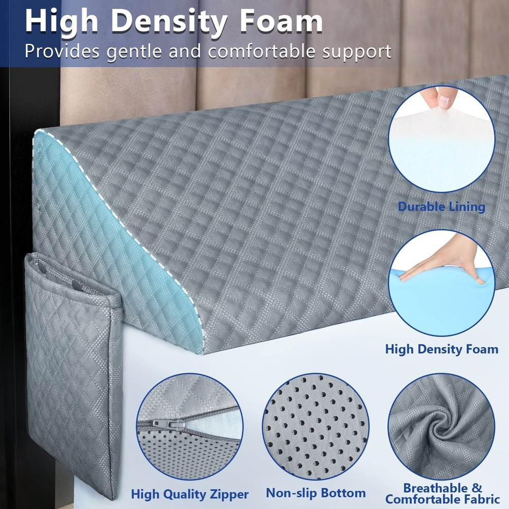 Kayfia bed wedge pillow seamlessly fills the gap between the mattress and the headboard, ensuring a smooth and comfortable surface for uninterrupted sleep. No more searching for fallen pillows or lost small items. We offer four sizes of gap-filling pillows to fill gaps ranging from 0 to 8 inches. 【Multiple Directional Pockets】The bed wedge pillow for headboard is designed with deep pockets on both sides, allowing you to conveniently store your phone, remote control, glasses, and more. The detachable pockets allow you to adjust their direction according to the orientation of the pillow. 【Versatile Support】When used in conjunction with a pillow, the bed gap filler gently lifts the head, relieving pressure on the shoulders and neck during sleep. It can also be used as lumbar support, providing extra comfort when reading in bed or leaning against a sofa. The non-slip particles on the bottom ensure that the pillow stays in place without easily shifting on the bed. 【High-Density Foam】The durability of the 25D high-density foam ensures that the wedge headboard pillow maintains its shape and support over time, providing long-lasting comfort and support. The pillowcase is made of soft and breathable material, and can be used directly as a pillow. 【Machine Washable】The bed wedge pillow stopper comes with a high-quality zipper for easy removal and machine washing. The kayfia mattress wedge pillow is also designed with an additional lining for added protection, ensuring the cleanliness and hygiene of the pillow. Please do not hesitate to contact us if you need any assistance. 【Note】Use a tool to carefully open the vacuum package and remove. Wait for 0-24 hours for the pillow fully expand and enjoy it. Country of Origin - Textiles Imported Assembled Product Weight 5.39 lb Brand Kayfia Manufacturer Kayfia Color Grey Assembled Product Dimensions (L x W x H) 76.00 x 10.00 x 6.00 Inches