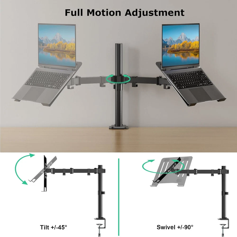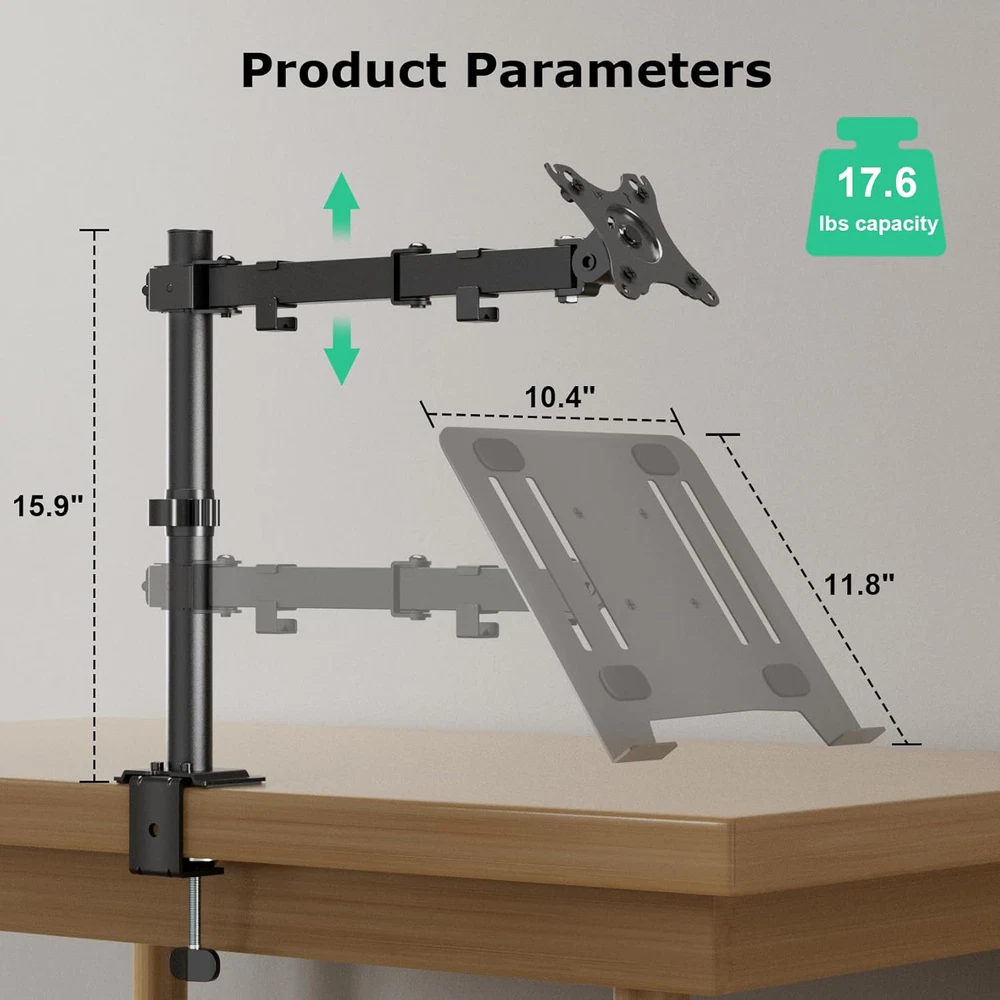 Fast Shipping Great Customer Support Satisfaction Guaranteed DESCRIPTION Shipping Shipping Shipping All domestic packages are shipped for Free (Unless other shipping method was selected during the checkout) Most items ship and arrive much sooner than the estimate delivery date. Usually within 2-3 days from payment. However, we have longer estimates to compensate for the occasional delay or supply chain breakdown. We do not accept P.O. BOXES - PLEASE PROVIDE A PHYSICAL ADDRESS Return Return Return In the event that you would like to return your purchase, we allow returns that are processed within the defined return date (the return date is to be found in the return policy/shipping and handling section) Please contact us for a return authorization and the return shipping address. Payment Payment Payment PayPal is our preferred method of payments it's the quickest, easiest and most secure way to pay for your goods or services online. PayPal offers buyer and seller protection should there be a problem. If you do not have a PayPal account, to get started and buy your first item with us is very easy. Simply click on the 'Buy It Now' button and follow the eBay checkout steps. Select PayPal as the payment method you then will be given the chance to enter your card details in to PayPal's secure checkout in order to pay for your order. Once the payment has been made, you will then be given the opportunity to make your own PayPal account to make paying for your items in the future very easy. Should there be a problem with payment please do let us know. Feedback Feedback Feedback Customer satisfaction is very important to us. If you have any problem with your order,please contact us and we will do our best to make you satisfied, please do not leave a negative feedback before we resolve your problem. We guarantee that your issue will be solved quickly. As long as you are happy with your purchase of , please leave us a positive feedback. Your feedback is very important to us it affects our search placement on eBay. We will leave a positive feedback for you in return automatically once we receive your feedback. Contact Us Contact Us Contact Us If you have any queries, please contact us via ebay. We usually respond within 24 hours on weekdays. Thank you for visiting our ebay store! 【Wide Compatibility】The design of 11.8 "x 10.4" detachable ventilated tray supports dual mounting options for laptops or monitors. For laptop and notebook up to 17", monitors up to 32" with VESA mounting holes 75x75mm and 100x100mm.It supports weights up to 17.6 pounds. 【Full Motion Articulation】The Laptop mount arm has three adjustable joints that support 90° tilt, 180° swivel, 360° rotation. The adjustable height along the center pole is 15.9 inches,allows you to adjust the position of the notebook anywhere. 【Better Working Condition】Our laptop desktop stand allows you to adjust your laptop to an ergonomic height. Free tilt, swivel,rotate to customize your exclusive viewing to keep your neck and back in the right position to improve your work efficiency. 【Cable Management】Integrated cable management system keeps your power and AV cords organized. Say goodbye to a cluttered desk. Create a more comfortable environment for you to enjoy the time of work, study and play. 【Easy Installation】 Our laptop mount comes with all mounting hardware, tools, and instructions necessary for assembly. Choose either C-clamp or grommet mounting. Adjustable Laptop Desk Mount for 17" Laptops, Full Motion Clamp/Grommet Mount Click here to see description Fast Shipping Great Customer Support Satisfaction Guaranteed DESCRIPTION Shipping All domestic packages are shipped for Free (Unless other shipping method was selected during the checkout) We ship within two business days of payment, usually sooner Standard FREE shipping takes between 3-5 business days Expedited shipping takes between 2-3 business days Overnight shipping takes between 1-2 business days We do not accept P.O. BOXES - PLEASE PROVIDE A PHYSICAL ADDRESS We Ship Globally using ebay's GSP, the item is sent to a logistic center in KY and shipped from there to the rest of the world. International customers are responsible for all duties and taxes Contact your local authority for questions related to the amount of duties or taxes you will be responsible for Return In the event that you would like to return your purchase, we allow returns that are processed within the defined return date (the return date is to be found in the return policy/shipping and handling section) Please contact us for a return authorization and the return shipping address. Please contact us for a Return Merchandise Authorization (RMA) number. We advise you to use a reputable carrier service when returning your goods. Please pack all returns appropriately. We ship globally Via eBay's global shipping program (GSP). Thus we don't cover returns for items shipped globally. Buyers returning such items will be refunded ONLY for the item's cost and not for the shipping. please check the Voltage information and make sure it matches the one in your country. In case it's not stated in the description, do ask us. Payment PayPal is our preferred method of payments it's the quickest, easiest and most secure way to pay for your goods or services online. PayPal offers buyer and seller protection should there be a problem. If you do not have a PayPal account, to get started and buy your first item with us is very easy. Simply click on the 'Buy It Now' button and follow the eBay checkout steps. Select PayPal as the payment method you then will be given the chance to enter your card details in to PayPal's secure checkout in order to pay for your order. Once the payment has been made, you will then be given the opportunity to make your own PayPal account to make paying for your items in the future very easy. Should there be a problem with payment please do let us know. Feedback Customer satisfaction is very importa