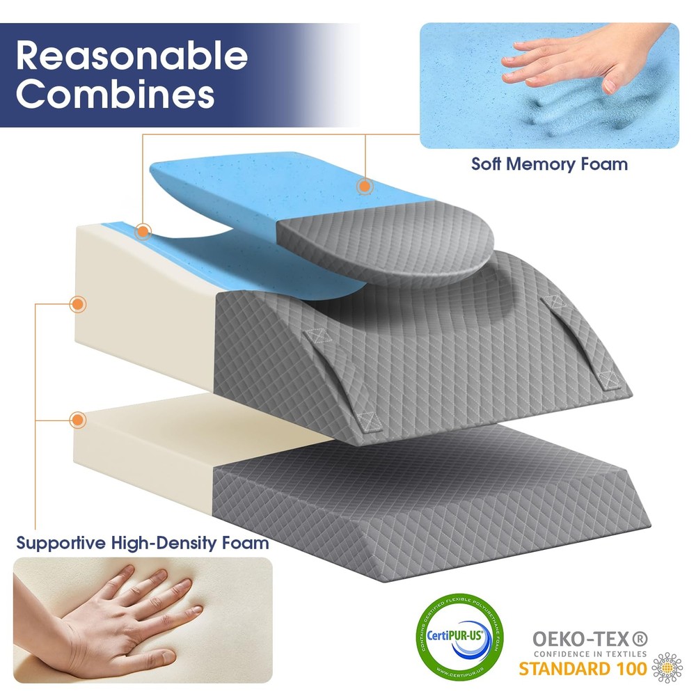 3PCS Adjustable Memory Foam Bed Wedge Pillow Set for Sleeping