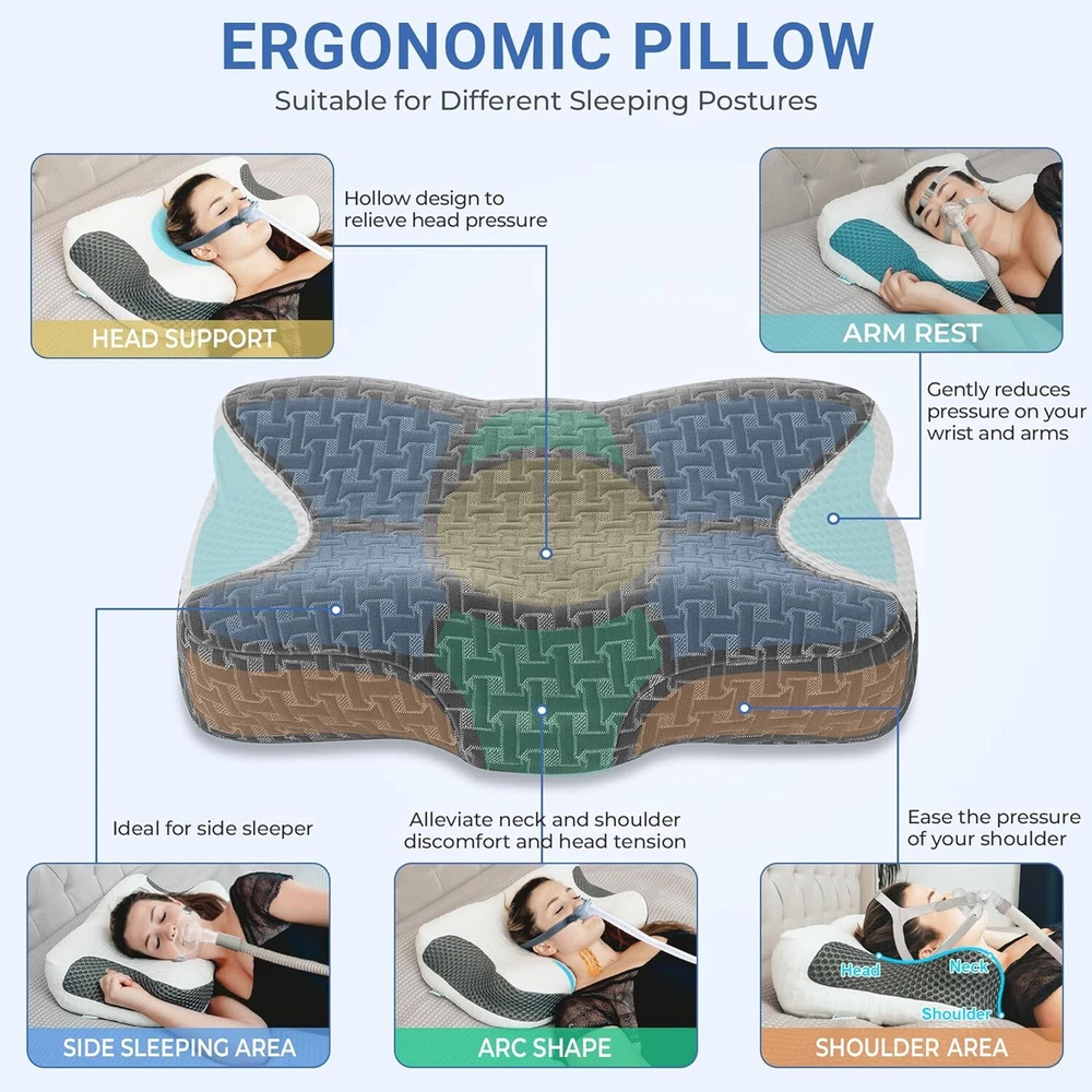 This pillow is a game-changer for CPAP users! The adjustable height and memory foam provide perfect neck support while the side cutouts keep tubing secure and reduce mask pressure. No more tangled tubes or air leaks—just comfy, uninterrupted sleep. The ergonomic design aligns the spine naturally, and it works with all CPAP mask types. Finally, a pillow that actually improves CPAP therapy! Highly recommend for anyone struggling with discomfort or mask leaks.