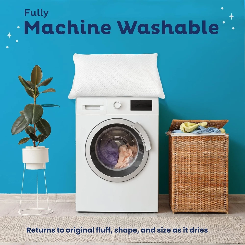 ADJUSTABLE - Find your perfect match! Whether you prefer firmness or softness, this side sleeper pillow includes adjustable shredded memory foam that lets you choose the way you snooze. CERTIFIED - Rest easy knowing our memory foam pillow is both Certi-PUR-US and GreenGuard Gold certified. No more losing sleep over your pillow's lack of quality. KOOL-FLOW TECH - Just when you thought this pillow couldn't get any cooler! The breathability and Kool-Flow tech of our bed pillow makes sweating while sleeping a thing of the past. MACHINE WASHABLE - Need a wash? Skip the wondering! Toss our viscose of bamboo pillow cover right in the washer - no stress! USA MADE - Our bed pillows & positioners are super durable, built for everyone, and best of all, made in the USA and developed by chiropractors for pain-free nights.