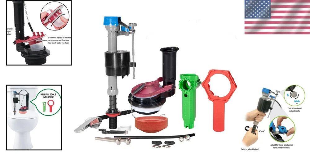 gtin13: Does not apply UPC: Does not apply Item Package Quantity: 1 Compatible Model: Universal, For Toto, For American Standard Product Dimensions: 7 X 8 X 14 Inches Style: Plumbing Fixture Material: Plastic Gallons per Flush: Toilet Repair Kit Item Diameter: 3 in Seat Height: Toilet Repair Kit Brand: Unbranded Type: Toilet Repair Kit Compatible Brand: American Standard Batteries Required?: No Item Diameter (Interior): Toilet Repair Kit Number in Pack: 1 Color: Multi Suitable For: Toilet Item Weight: 2 Pounds Items Included: Fill Valve, Flush Valve, Flapper, Gasket, Tank Lever, Hardware, Tools Size: No Size Room: Bathroom Features: Adjustable Height, Fast Refill, Quiet Refill, Adjustable Tank Dial, Adjustable Bowl Dial, Adjustable Flush Valve, Universal Design