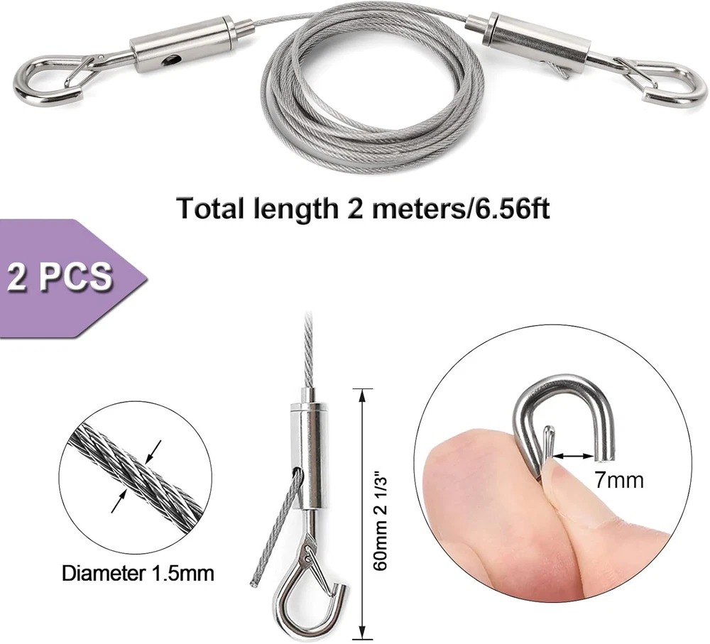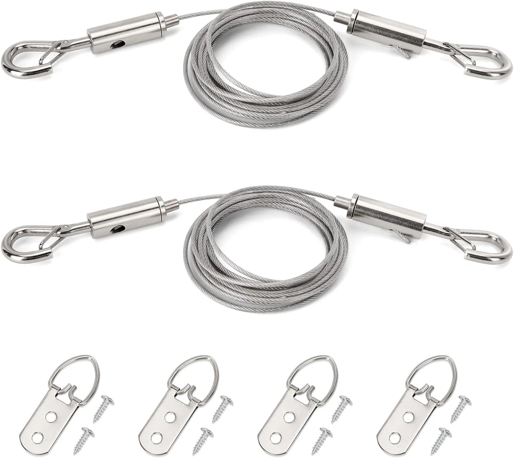 Store New Arrivals Add to Favorite View Feedback Contact Adjustable Picture Hanging Wire Heavy Duty Supports 50 Lbs - 2 Kit Hanging Description Item model number ph-wire-0315 Unit Count 2.0 Count Style With Sheath Fastener Type Double Ring Part Number ph-wire-0315 Color Silver Product Dimensions 78.74 x 0.79 x 0.06 inches Material Stainless Steel Country of Origin China Batteries Required? No Maximum Weight Recommendation 50 Pounds Item Weight 4.2 ounces Installation Type Screw-In Batteries Included? No Surface Recommendation Drywall Manufacturer KAROSOM Size 2 sets Brand KAROSOM Included Components 2m x1.5mm picture hanging wire 【Load Bearing 50 LBS】This heavy duty mirror hanging wire is made of 7x7 strands core of stainless steel wire rope with a diameter of 1.5mm/0.059 inches, can safely support items up to 50 pounds. 【High Quality Material】The adjustable wire rope and hooks are made of 304 stainless steel, which is not easy to rust and corrode. The surface of the wire rope is covered with PVC coat, this makes it easier to clean. 【Easy To Use】The length of the picture wire can be adjusted manually without any tools. You just need hold down the adjusting column at the bottom of the hook and drag the wire rope to adjust the length easily. Picture hangers wire is 2 meters (6.56 feet) long, you can adjust the length freely within 2m according to your needs. 【Application Widly】These hanging wire are suitable for many occasions, such as art exhibitions, libraries, coffee shop, home. Perfect for hanging heavy-duty picture frames, heavy-duty mirror, LED screen, billboards, flower pot pendants, signs, curtains, fashion wall clock decorations and etc. 【Package Includes】Each package includes 2 sets picture hanging wire kits and 4 pack heavy duty d ring picture hangers and screws. 【Quality Service】Reliable customer service support within 24 hours. Not satisfied with the product or have questions about the quality? Please contact us via Amazon. Product Description Our heavy duty mirror hanging wire is made of 7x7 strands core of stainless steel wire rope with a diameter of 1.5mm/0.059 inches, can safely support items up to 50 pounds. High Quality Material The adjustable picture hanging wire rope and hooks are made of 304 stainless steel, which is not easy to rust and corrode. The surface of the wire rope is covered with PVC coat, this makes it easier to clean. Easy To Use The length of the picture hanging wire can be adjusted manually without any tools. You just need hold down the adjusting column at the bottom of the hook and drag the wire rope to adjust the length easily. Supports 50 LBS This heavy duty mirror hanging wire is made of 7x7 strands core of stainless steel wire rope with a diameter of 1.5mm/0.059 inches, can safely support items up to 50 pounds. These picture hanging wire are perfect for hanging heavy-duty picture frames, heavy-duty mirror, LED screen, flower pot pendants, billboards, signs, curtains, fashion wall clock decorations and etc. Hanging Flower Pot Hanging chandelier Hanging Warning Signs Hanging curtains ABOUT US We offer the best prices around on high quality products. Our E-store includes media such as books, movies, music and games while offering electronics, toys, sporting apparel, clothing, tools, general home, garden items and more. SHIPPING We are always working hard to ensure your package arrives as soon as possible. Please understand that some factors like weather, high postal traffic, and the performance of shipping companies are outside of our control. We offer free shipping to the lower 48 states and ship within 2 business days of payment, usually sooner. We do not accept P.O. Boxes. Please provide a physical address. For shipping outside of the continental USA, we only use eBay's Global Shipping Program.The item is shipped to KY and then sent to the rest of the world. International customers are responsible for all duties and taxes. Continue to check out in order to calculate costs for shipping the item to your country. Messages regarding eBay's Global Shipping Program MUST be directed at eBay EXCLUSIVELY. RETURNS We offer a 30-Day Return Policy on items which you are not completely satisfied with. You have the option for a full-refund or an exchange of the item. No returns are available on items shipped outside of the USA. PAYMENT We accept PayPal. CONTACT US This page content is yet to come Please ad us to your favorite seller and visit again later Thank You CUSTOMER SATISFACTION We try our very best to make sure every customer is completely satisfied. If there's a problem, message us! We're happy to help. WE ACCEPT Copyright © 2021 AutoDS. | All Rights Reserved