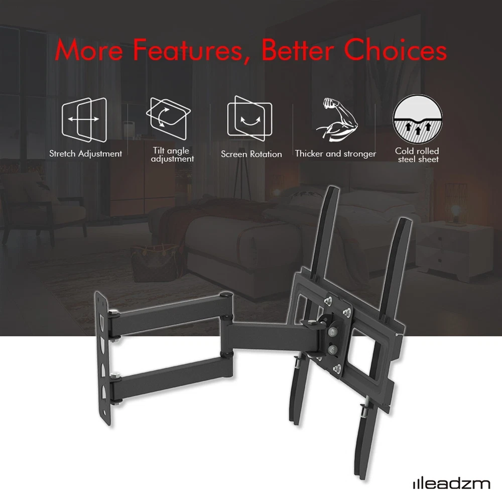 Introductions: Are you still having trouble with putting your TV? This LEADZM 32-65" Wall Mount Bracket TV Mount TMXD-103 with Spirit Level can avoid the trouble of how to put you TV. This TV stand can save space of your living room and provide a large space for you and your families. You can watch TV when you do yoga or play games with your children. The maximum weight of 35kg makes the TV stand more stable and reliable. We hope our products can bring you more perfect watching experience. Features: 1. Save space 2. The maximum weight of 35kg makes the TV stand more stable and reliable 3. Light weight and easy installation 4. High-quality steel is not easy to rust and deform 5. Suitable for study, meeting room, classroom and so on Specifications: 1. Brand: LEADZM 2. Model: TMXD-103 3. Type: Mount 4. Supportable Display Size: 32" - 65" 5. Tilt Range: -10 ~ 10° 6. Max VESA Mounting Pattern: 400 x 400 mm 7. Distance Between TV and Wall: 82mm-430mm 8. Load Capacity: 77.16lb / 35kg 9. Material: Cold Rolled Plate 10. Surface: High Temperature Paint Piano 11. Color: Black Package Includes: 1 x TV Wall Mount 1 x Standard Hardware Kit (The Screw Kit Is Standard. Don't Make Sure Fit All The TV Models. Please Buy One Kit If Don't Fit) 1 x User Manual