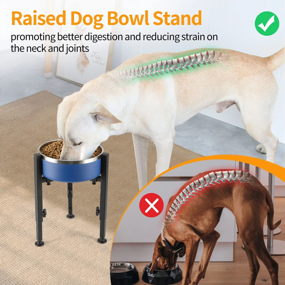The Single Dog Bowl Stand is a must-have addition to any pet owner's household. This sturdy and stable stand features a triangle design made of durable metal material,ensuring that it stays in place while your furry friend eats and drinks. The stand is designed with 4 adjustable height options,allowing you to customize it to your pet's specific needs, promoting better digestion and reducing strain on the neck and joints. Additionally, the width adjustable design can accommodate different kinds of dog bowls,making it the perfect choice for pets who require food or water. Cleaning the Adjustable Dog Food Bowl Stand is a breeze,with easy-to-clean and disinfect features that ensure a hygienic feeding area for your pet. The removable bowls and stand are both dishwasher-safe,making it a convenient and hassle-free cleaning experience for pet owners. This elevated dog bowl stand is perfect for large dogs,providing a comfortable feeding experience without the need to bend down or strain their neck. The tall dog bowl stand is also ideal for pets with arthritis,promoting a more comfortable feeding posture and reducing joint pain. In conclusion,the Adjustable Dog Bowl holder is a versatile and practical solution for pet owners looking to provide their furry friends with a comfortable and hygienic feeding area. With its sturdy and stable design,adjustable height options, and convenient cleaning features,this elevated dog bowl stand is a must-have for any pet owner looking to promote better digestion and reduce joint pain in their pet. Steady triangle design:The dog food bowl stand is made of durable metal material ensures the stand stays in place while your furry friend eats and drinks. Adjustable Height: With 4 adjustable height options(8.5",11",12.25",14.5"),this elevated dog bowl stand can be customized to fit your dog's specific needs, promoting better digestion and reducing strain on the neck and joints. Width Adjustable Design: The dog bowl stand is designed to accommodate kinds of dog bowls, with a width adjustable feature that allows you to fit any size of food and water bowls for your pet. Easy to Clean:This elevated dog bowl holder is easy to clean and disinfect,making it a hygienic choice for your pet's feeding area.The removable bowls and stand for easy cleaning. Perfect for Large Dogs: This tall dog bowl stand is ideal for large dogs or pets with arthritis, providing a comfortable feeding experience without the need to bend down or strain their neck. Guarantee:If you are not satisfied,send it back in 30 days for refund,free to contact us and reply to you as soon as possible