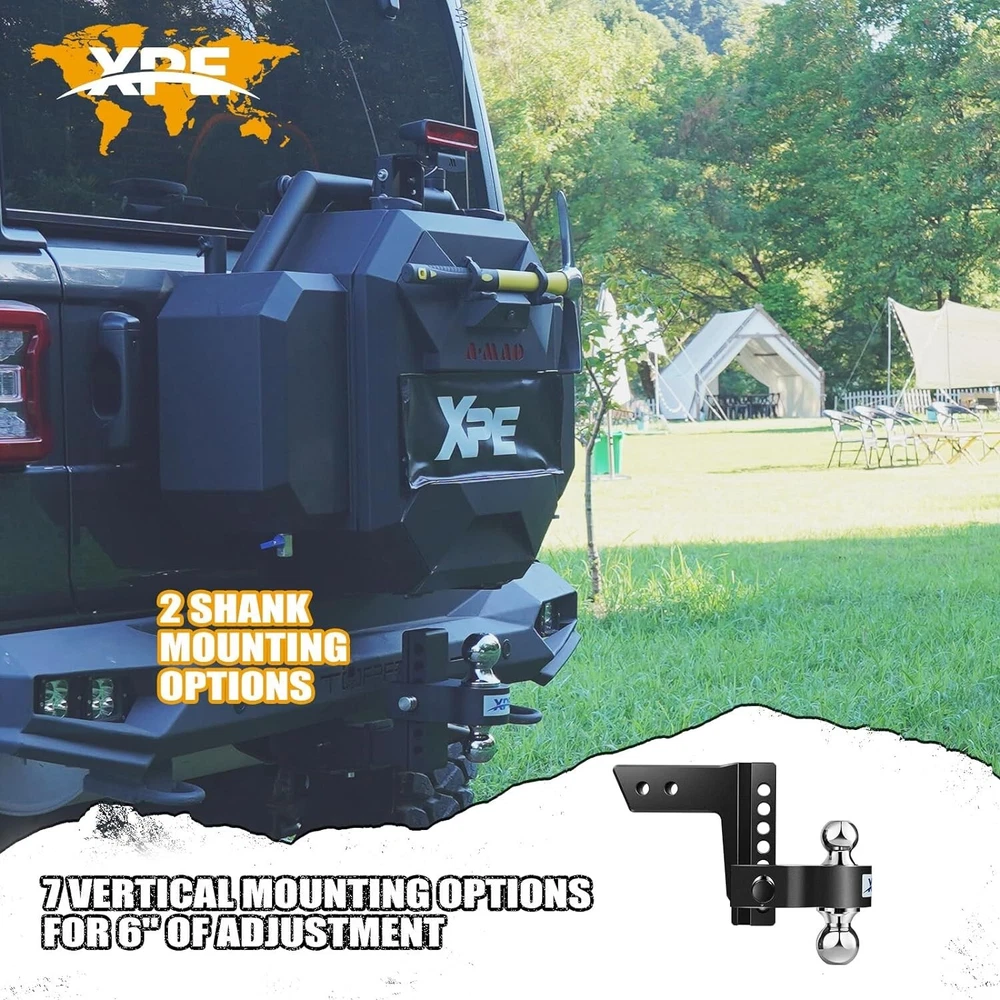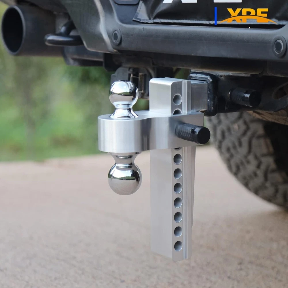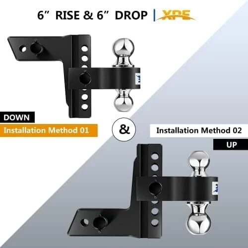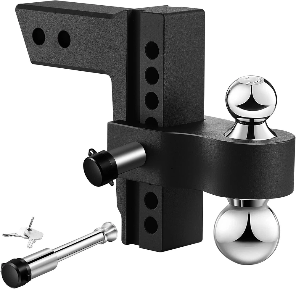 Item Description Material: Aluminum Ball Size: 2" and 2-5/16" Adjustable Height: 10" / 6"/ 8" Drop Distance (Adjusts in 1" Increments) Loading capacity: 2" Ball-8,000 LBS, 2-5/16" Ball -18,500 LBS Pin Hole Diameter: 5/8" Compatible with: Vehicles with 2.5 " Hitch Mounts Package Includes: Adjustable Steel Tailer Shank, Hitch Ball ( 2" And 2-5/16"), 2 Pin Lock