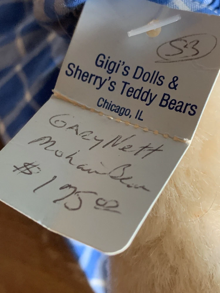 12” mohair bear by Artist Gary Nett excellent clean initialed embroidered right hand paw pad. Buy now no reserve, pet & smoke free.